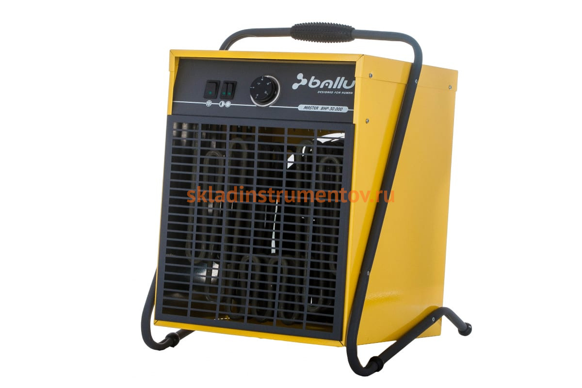 Электрическая тепловая пушка Ballu BHP-30.000 - большой мощный прибор, который работает при помощи надежного ТЭНа и вентилятора. Несложный принцип работы обеспечивает долгий срок эксплуатации и гарантирует хороший обогрев помещения площадью до 300 кв.м. Высокая производительность позволяет очень быстро обогреть помещение и поддерживать температуру. Несмотря на большой вес, конструкцию удобно переносить при помощи необычной рукоятки-подставки. Кнопки управления располагаются на передней панели, ими удобно регулировать режим работы.