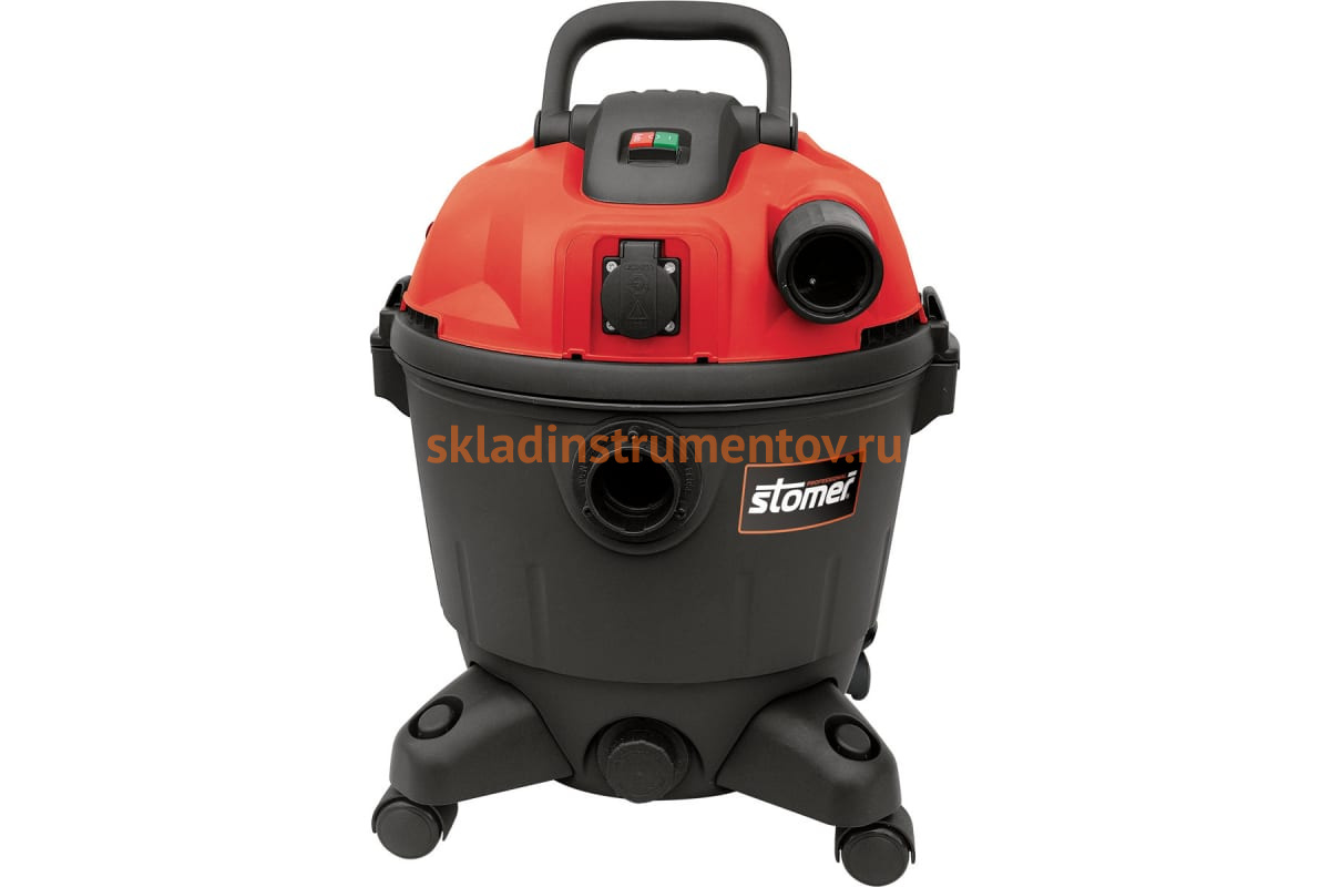 Пылесос STOMER SVC-1235 98299403 предназначен для сбора жидкости, крупного мусора и стружки. Подключив его к электроинструменту, он автоматически будет убирать пыль и стружку, продувать отверстия и сдувать мусор. С помощью функции выдува можно убирать листья с дорожек. Объем бака составляет 35 л. Контейнер выполнен из прочного пластика, его легко отсоединить быстросъемными зажимами. Перемещать устройство легко благодаря роликовым колесам.