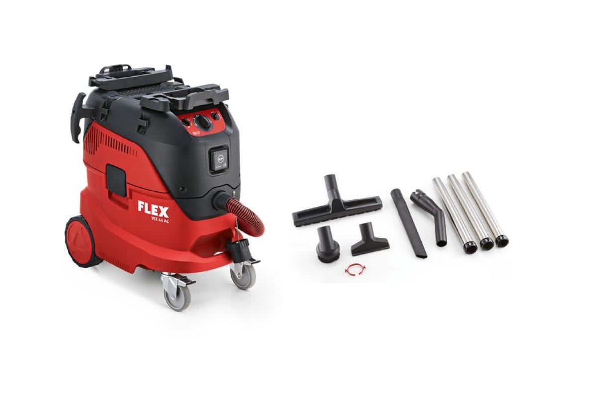 Строительный пылесос FLEX VCE 44 H AC-Kit 446025 - безопасная модель класса Н. Отлично подходит для санации плесневого грибка и сбора сухих негорючих пылеобразных веществ, вредных для здоровья.