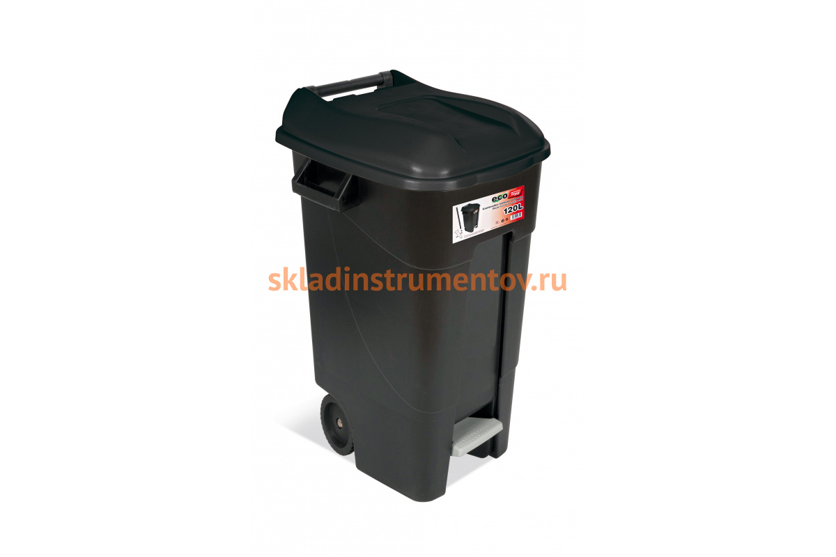Контейнер для мусора Tayg Эко 120 л 443077с педалью и крышкой используется для сбора бытовых и промышленных отходов.
