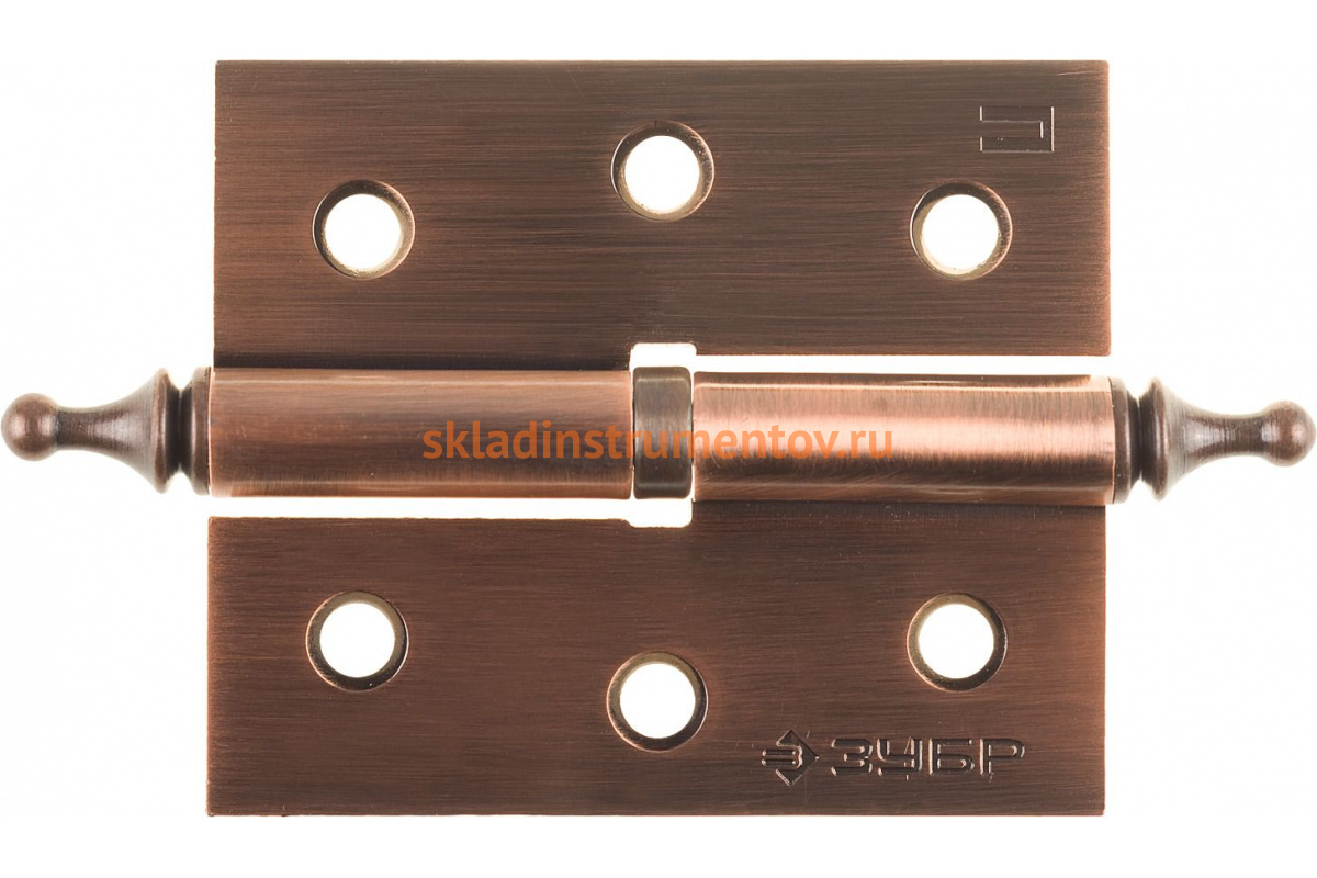 —Дверная разъемная петля Зубр Эксперт 1 подшипник цвет старая медь AC правая с крепежом 75x63x2.5 мм 2 шт. 37605-075-6R—