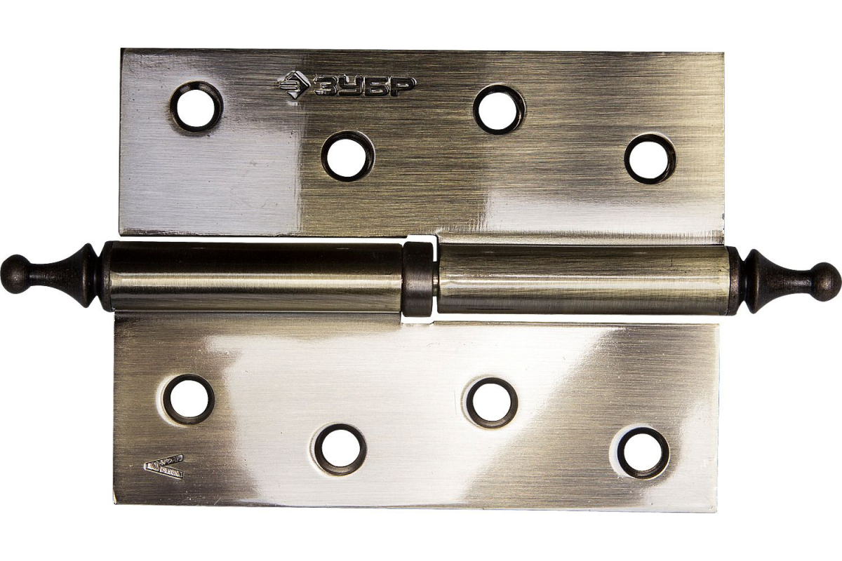 —Дверная разъемная петля Зубр Эксперт 1 подшипник цвет старая латунь AB левая с крепежом 100x75x2.5 мм 2 шт. 37605-100-5L—