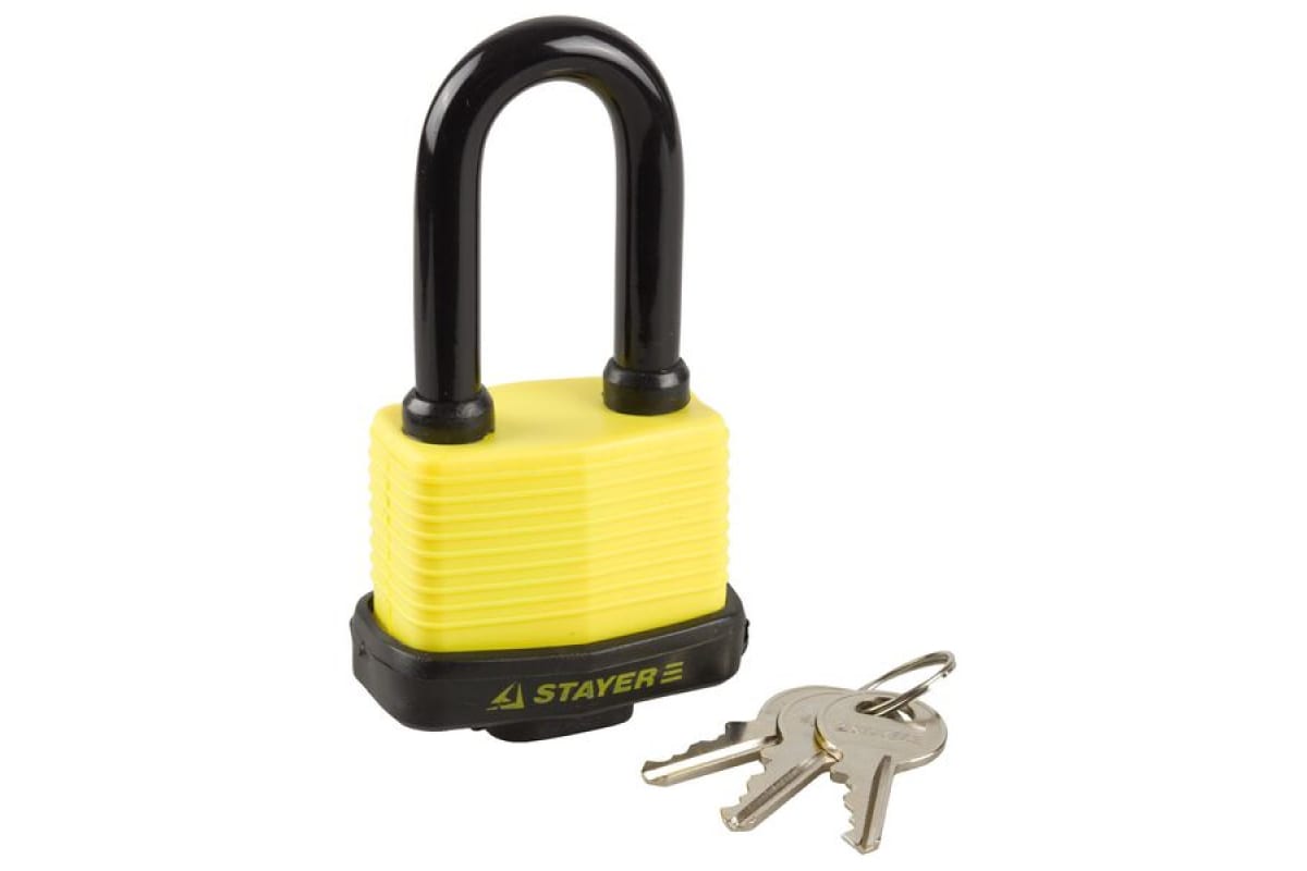 Навесной всепогодный замок 50 мм STAYER MASTER 37141-40 с удлиненной дужкой из закаленной стали имеет широкую сферу применения. Он гарантирует защиту от несанкционированного доступа в помещение и сохранность вещей. Запирающий механизм изготовлен по передовым технологиям из качественной латуни, что обеспечивает постоянную работу замка.