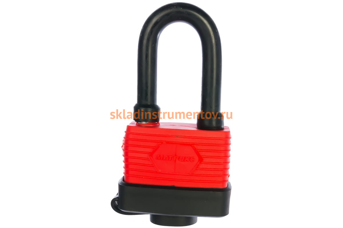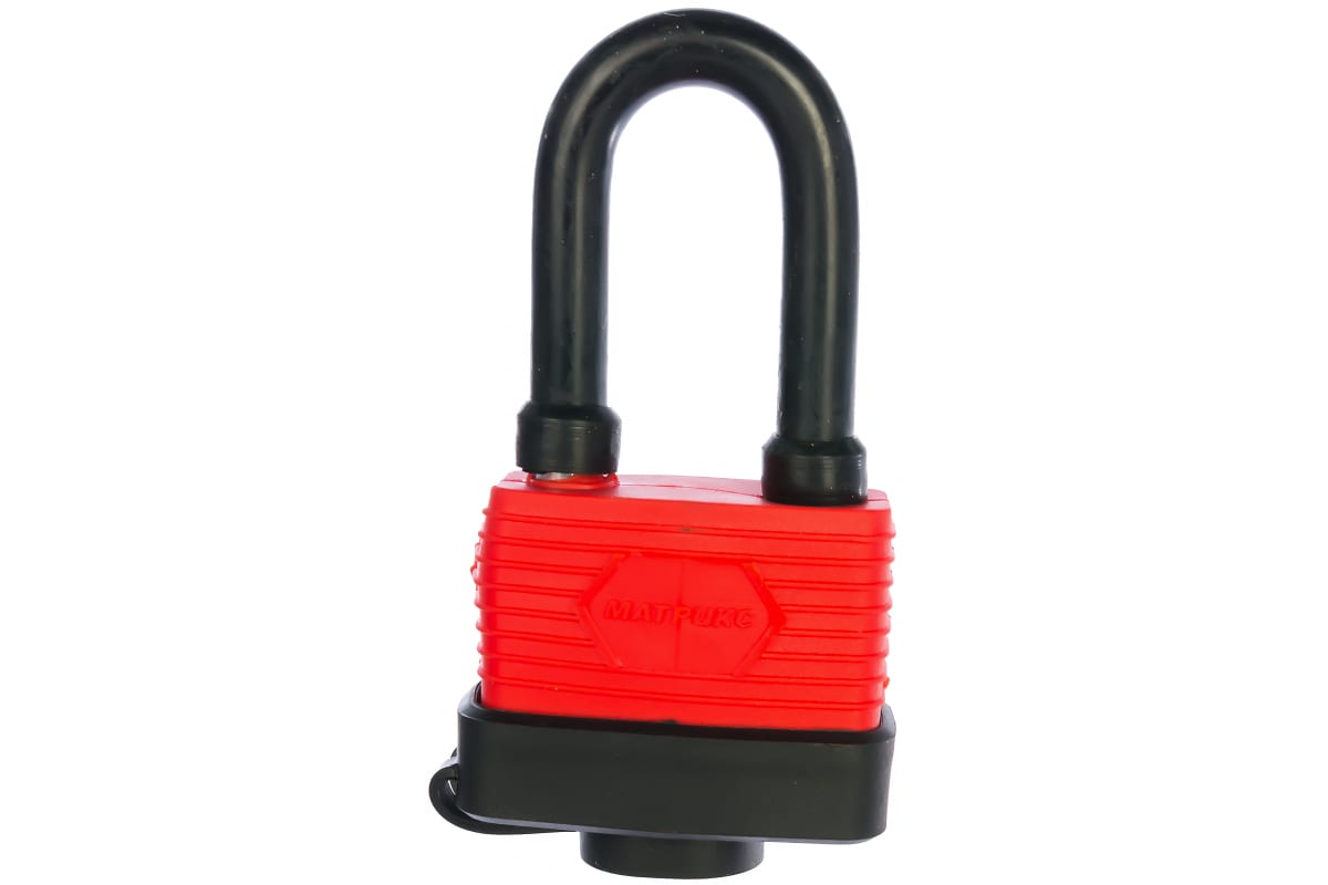 Навесной всепогодный замок MATRIX 50 мм удлиненная дужка 91826 обладает прочным обрезиненным корпусом. Изделие имеет стальные дужку и засов. Герметизация корпуса и дужки замка, минимальный размер зазоров между деталями, специальная крышка на ключевой блок делают конструкцию стойкой к воздействию атмосферных осадков. В комплекте три ключа.