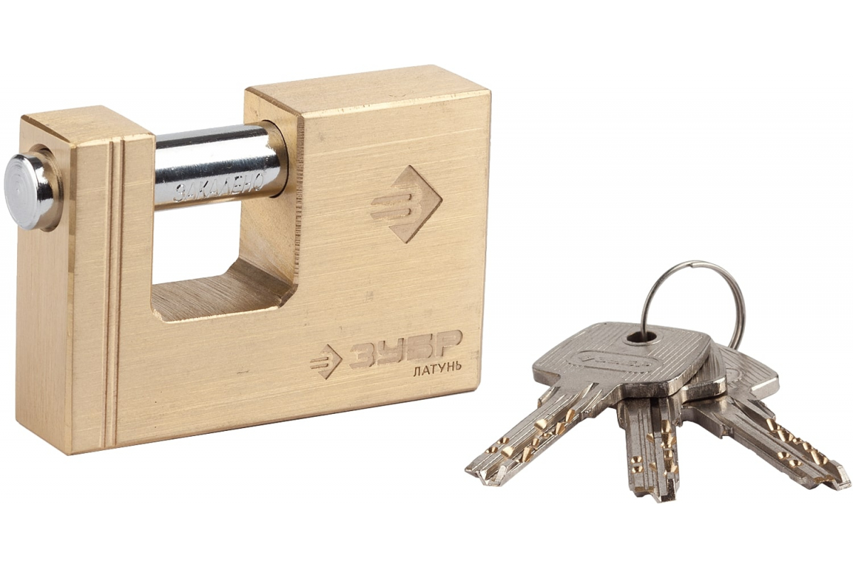 —Навесной замок ЗУБР ЭКСПЕРТ латунный корпус П-образная форма 75мм 37295-70—