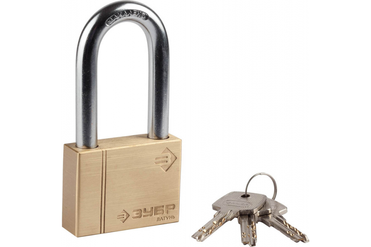 —Навесной замок ЗУБР "ЭКСПЕРТ" латунный корпус, классическая форма, удлиненная закаленная дужка, 60 мм 37299-60-1—