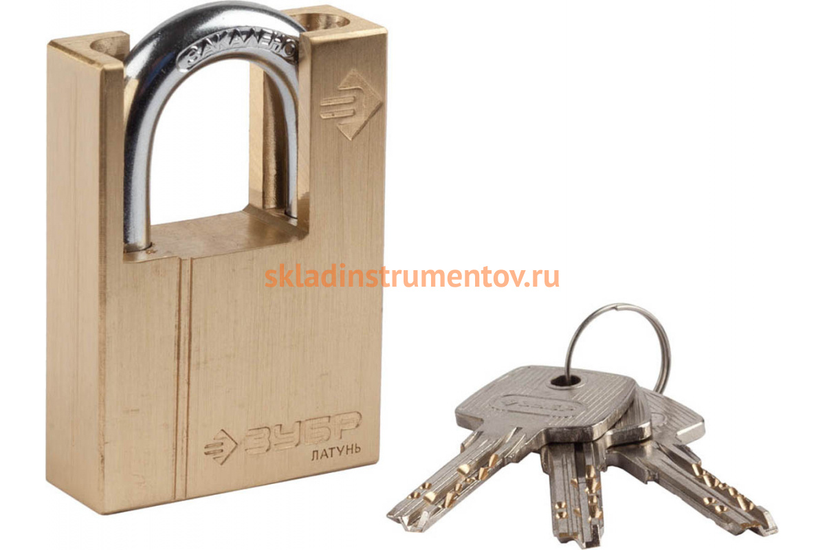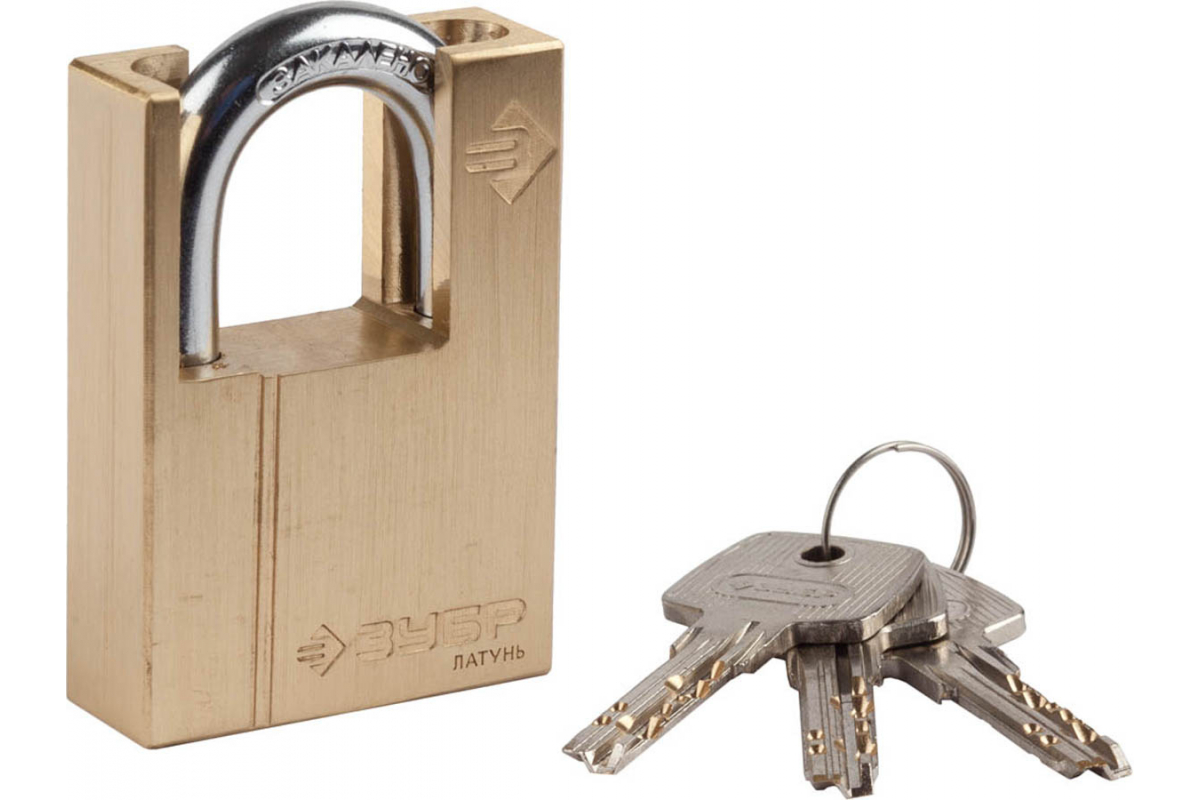 —Навесной замок ЗУБР "ЭКСПЕРТ", латунный корпус, закаленная дужка, с дополнительной защитой, 50 мм 37297-50—