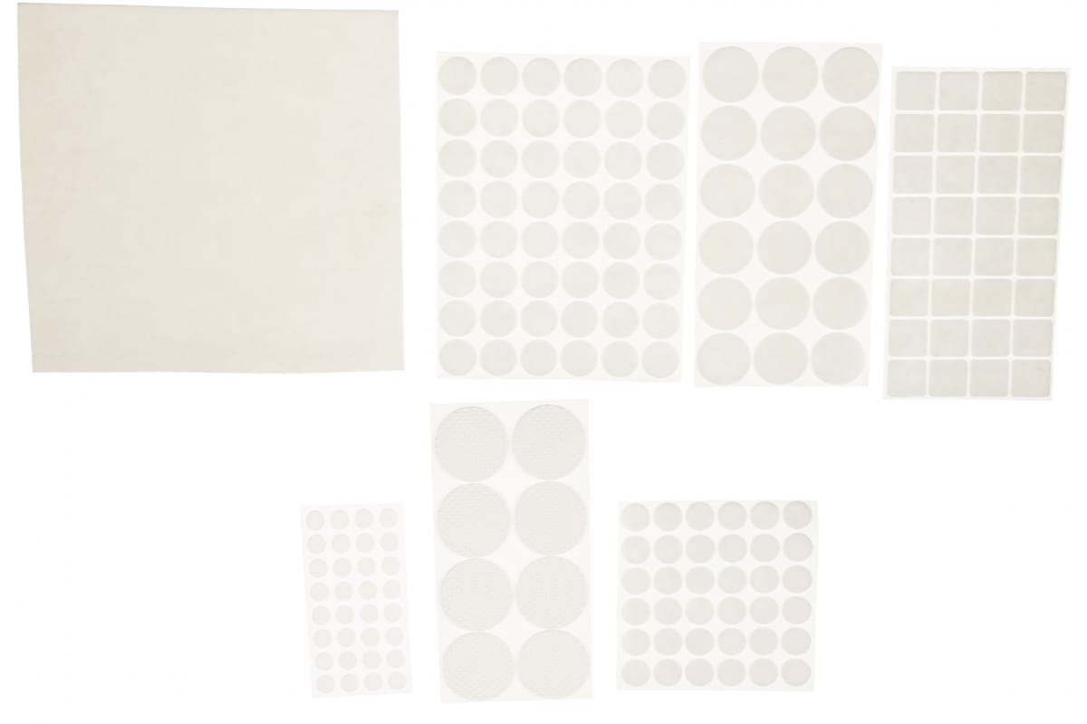 Набор самоклеящихся накладок на мебельные ножки Stayer COMFORT 175 шт, белые 40917-H175 имеет в комплекте изделия выполненные из фетра, а также из ЭВА. Накладки имеют разную форму, для крупногабаритной мебели и мебели небольших размеров. Самоклеящийся слой позволяет надежно зафиксировать накладку на ножке и защитить напольное покрытие от истираний и царапин.
