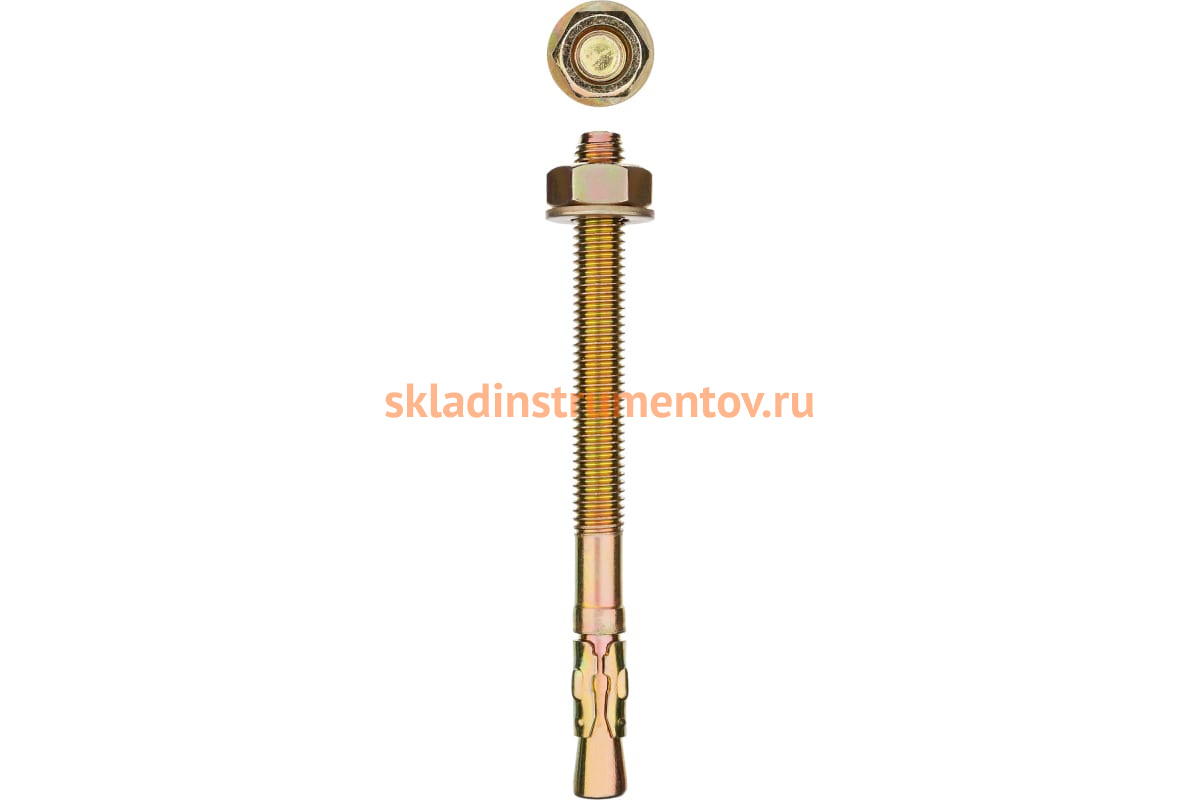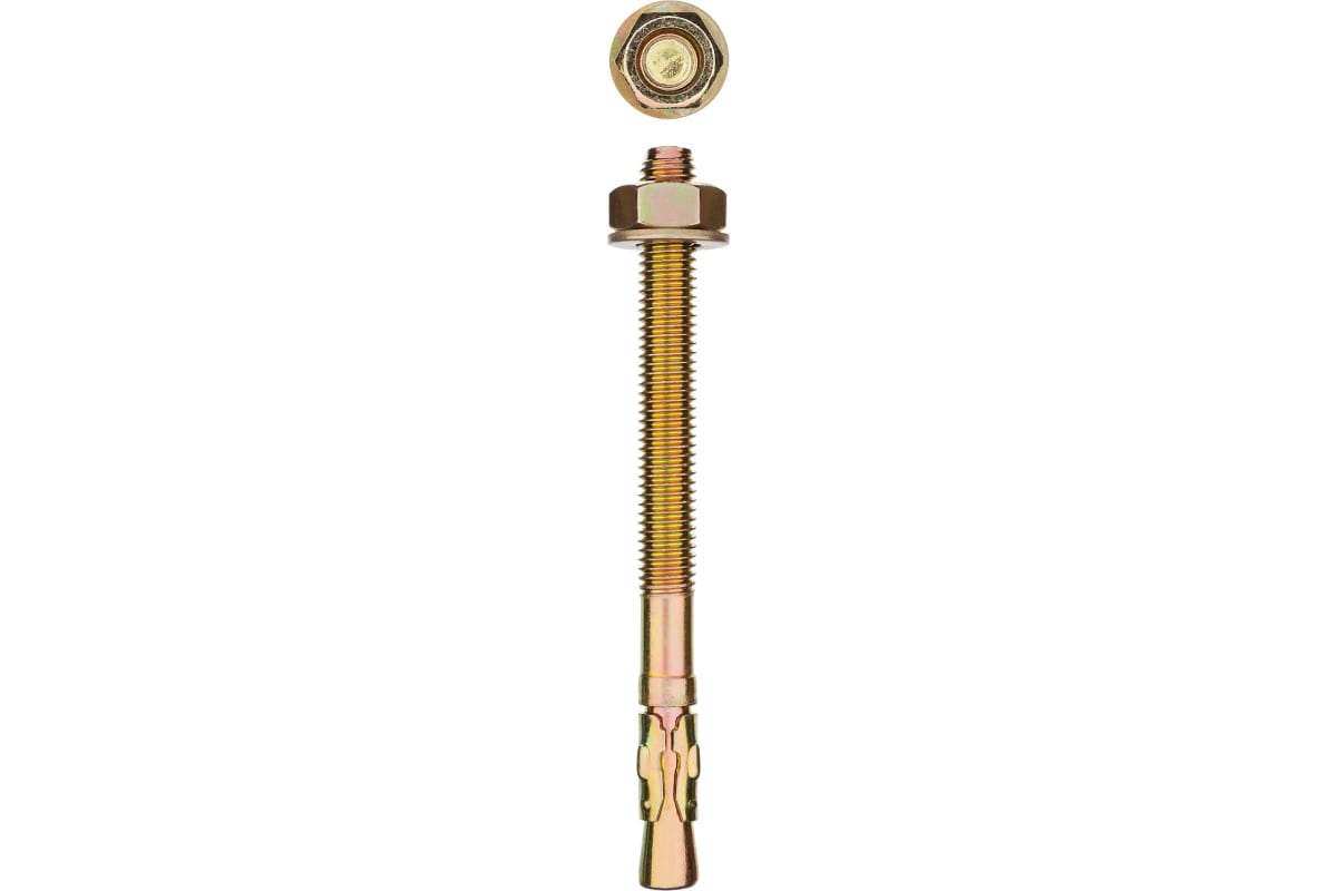 Клиновой анкер Зубр М16 х 180 мм, 10 шт, желтопассивированный 302032-16-180 служит для монтажа конструкций к поверхностям и несущим основаниям из бетона и природного камня.