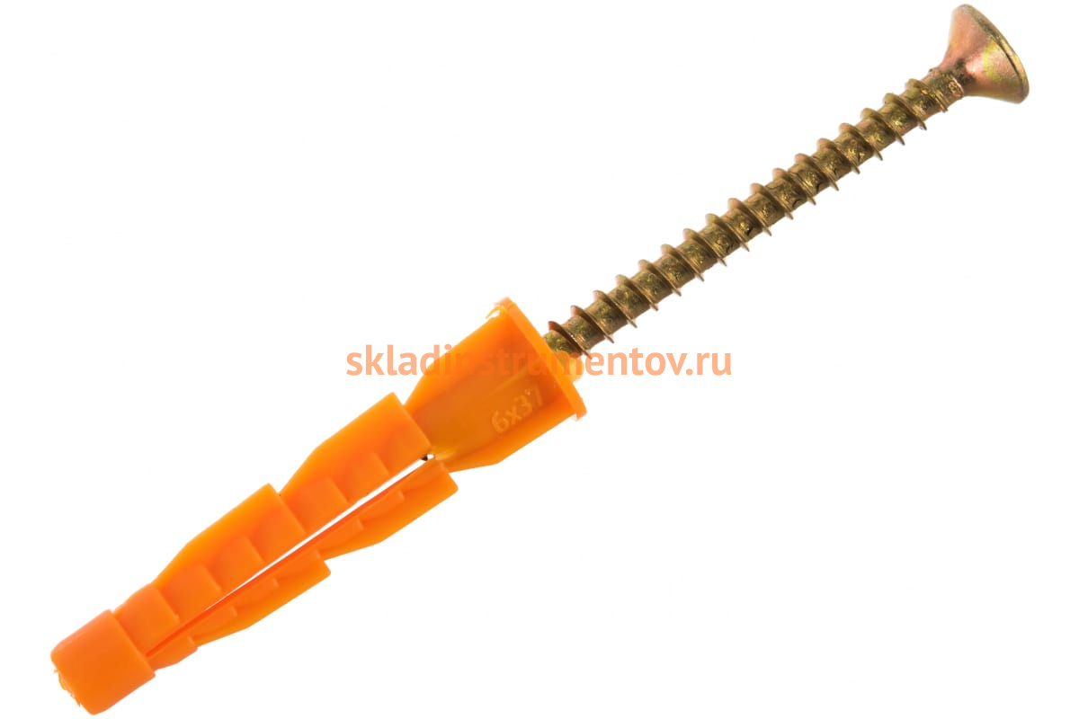 Дюбель ЗУБР 4-301206-06-037 - это универсальный полипропиленовый дюбель с бортиком. Его используют для крепления элементов конструкций как к полнотелым, так и пустотелым строительным материалам при помощи шурупов. В комплект входит шуруп (диаметр х длина): 4х50мм.