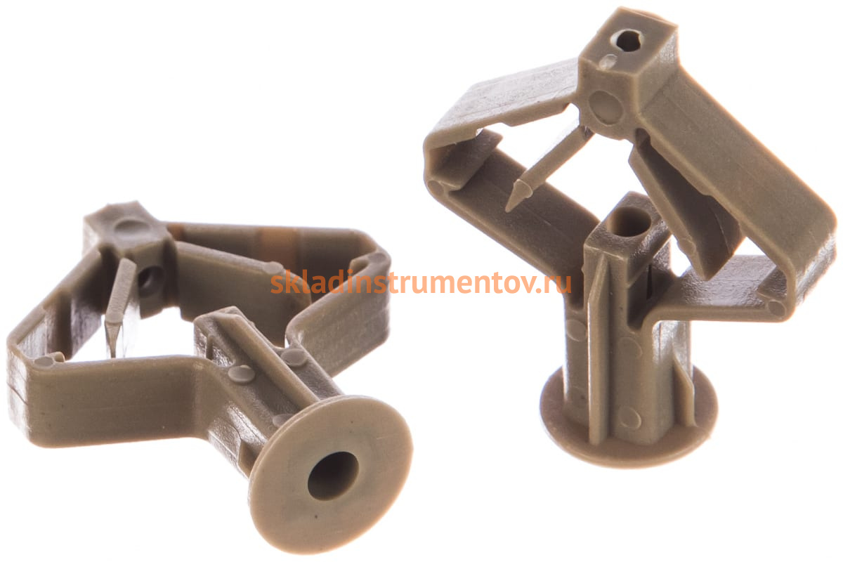 Дюбель ЗУБР 4-301325 типа "Бабочка" изготовлен из полипропилена. Его применяют при креплении светильников, плинтусов, кабельных каналов, деревянных реек к гипсокартону. Фиксация осуществляется с помощью обычного шурупа диаметром 3,5 мм (приобретается отдельно).