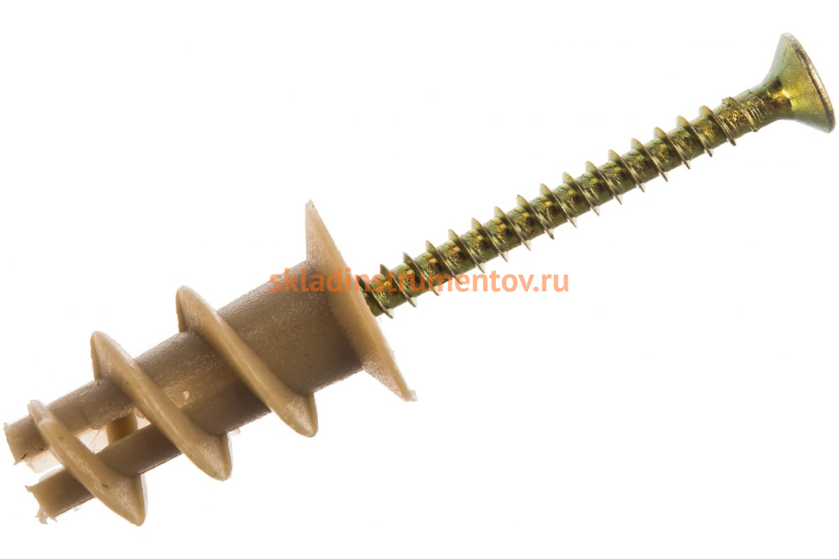 —Дюбель для гипсокартона Зубр нейлоновый, с оцинкованным саморезом и установочн. инструментом, ТФ 6, 23мм, 8шт 4-301256—