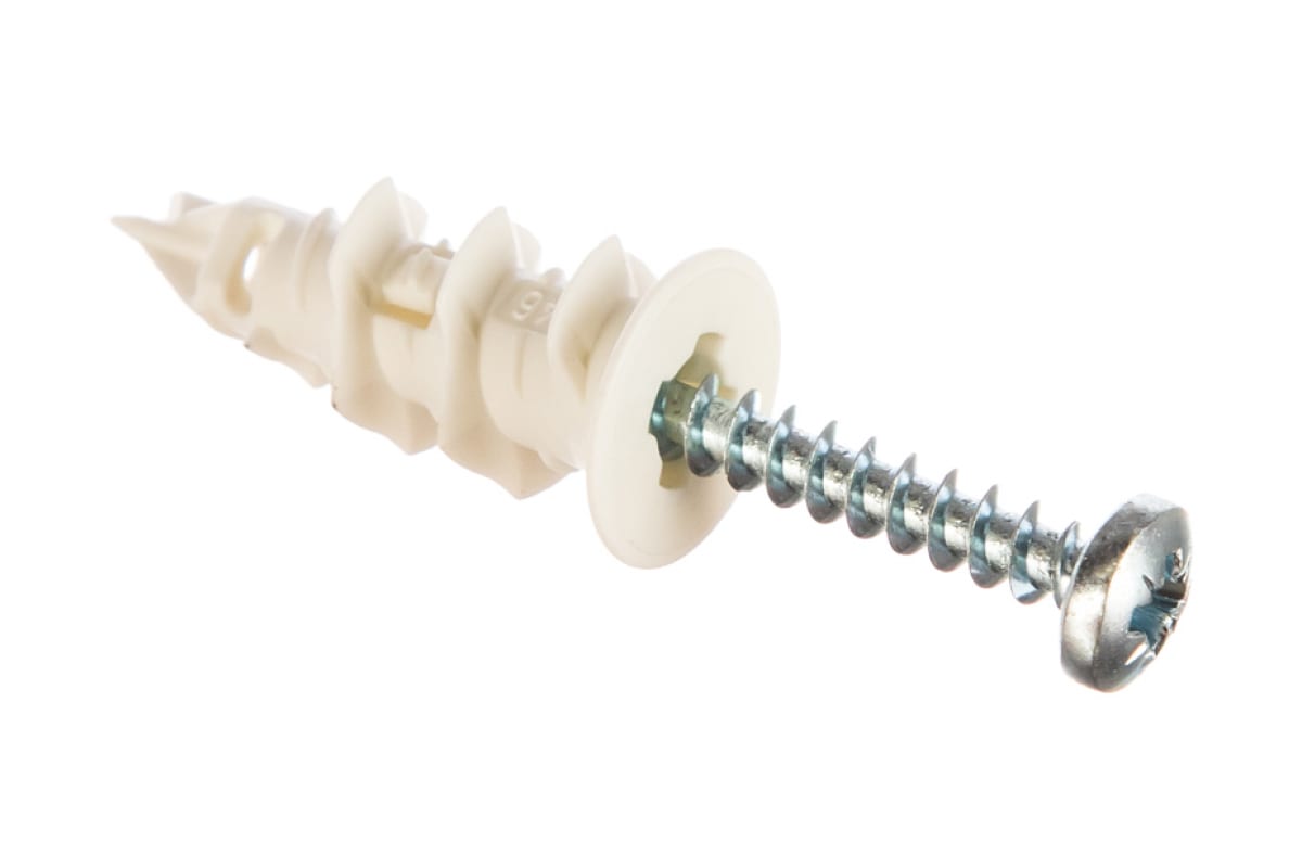 Дюбель Фибер-Джет по гипсокартону Mungo MFJ-S 32 с шурупом 100 шт. 18011124 используется для крепления различных конструкций (светильников, плинтусов, картин и т.д.) в гипсокартоне, ГВЛ. Состоит из шурупа диаметром 4.5 мм и дюбеля из полиамида, армированного стекловолокном. Для установки дюбеля предварительное сверление не требуется. Он монтируется в поверхность с помощью электрошуруповерта с крестовой насадкой. Количество в упаковке: 100 штук.