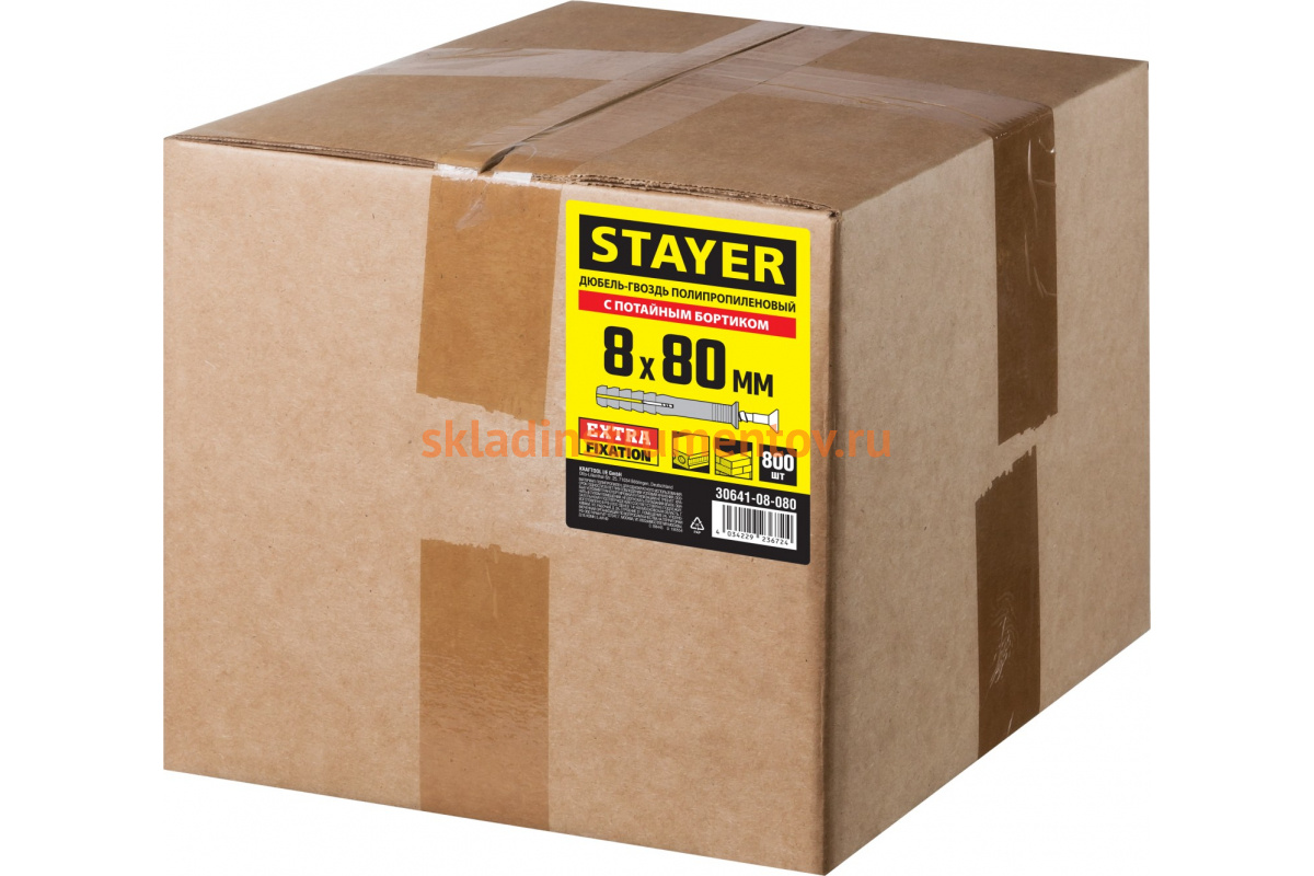 —Полипропиленовый дюбель-гвоздь Stayer потайный бортик 8x80 мм 800 шт. 30641-08-080—