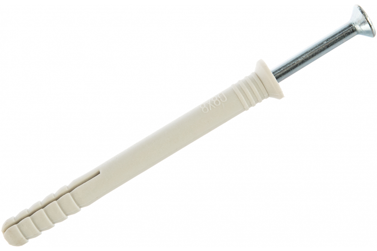 Дюбель-гвоздь Зубр 4-301375-08-080 используется для быстрого крепления неответственных конструкций к плотным материалам (бетон, строительный камень, полнотелый кирпич). Гвоздь с ударной резьбой забивается в дюбель с помощью молотка, что позволяет значительно экономить время на монтажные работы. Монтаж/демонтаж можно осуществлять многократно. В комплект входит гвоздь с потайной головкой (шлиц Pz). Гвоздь изготовлен из стали и желтопассивирован, что исключает коррозию.