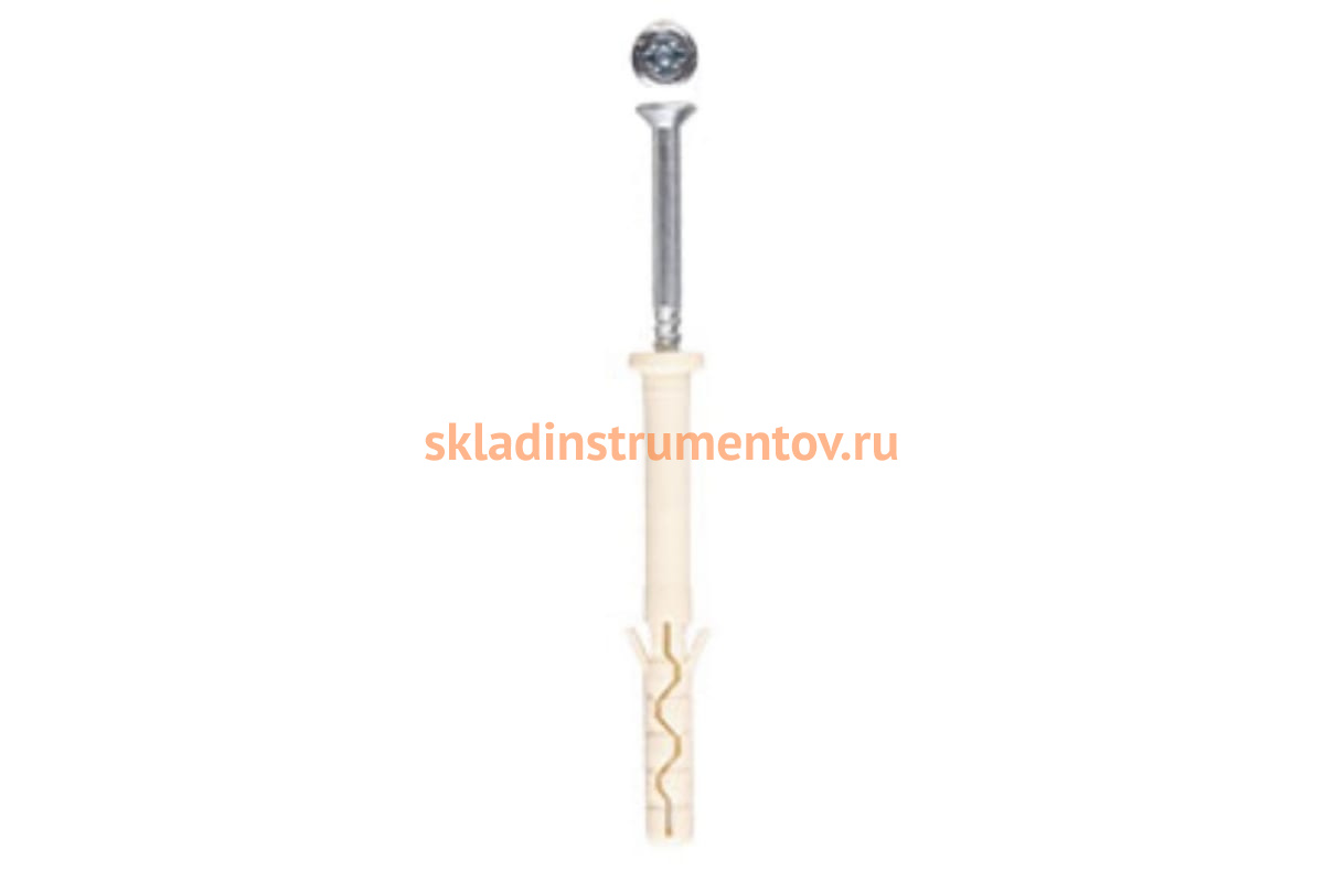 Дюбель-гвоздь Зубр 4-301395-06-040 устойчив к динамическим нагрузкам. Его используют для быстрого сквозного монтажа различных конструкций к таким полнотелым основаниям, как бетон, кирпич, камень. При помощи шлица PZ осуществляют демонтаж крепления. Гвоздь стальной, оцинкованный, а дюбель изготовлен из нейлона. Данный гвоздь с резьбой забивают в дюбель при помощи молотка. Диапазон рабочих температур: от -40 ºС до +80 ºС.