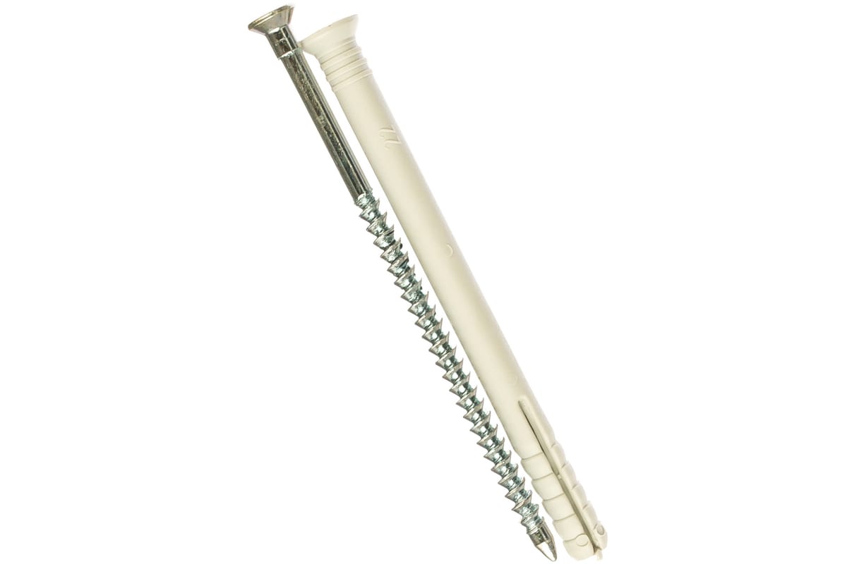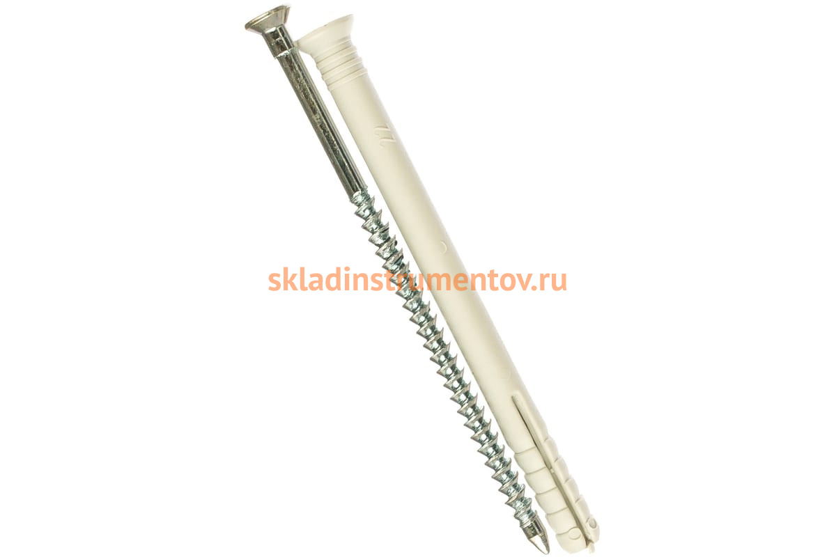 Дюбель-гвоздь Зубр 4-301375-08-100 устойчив к динамическим нагрузкам. Его используют для быстрого сквозного монтажа различных конструкций к таким полнотелым основаниям, как бетон, кирпич, камень. При помощи шлица PZ осуществляют демонтаж крепления. Гвоздь стальной, оцинкованный, а дюбель изготовлен из нейлона. Данный гвоздь с резьбой забивают в дюбель при помощи молотка. Диапазон рабочих температур: от -40 ºС до +80 ºС.