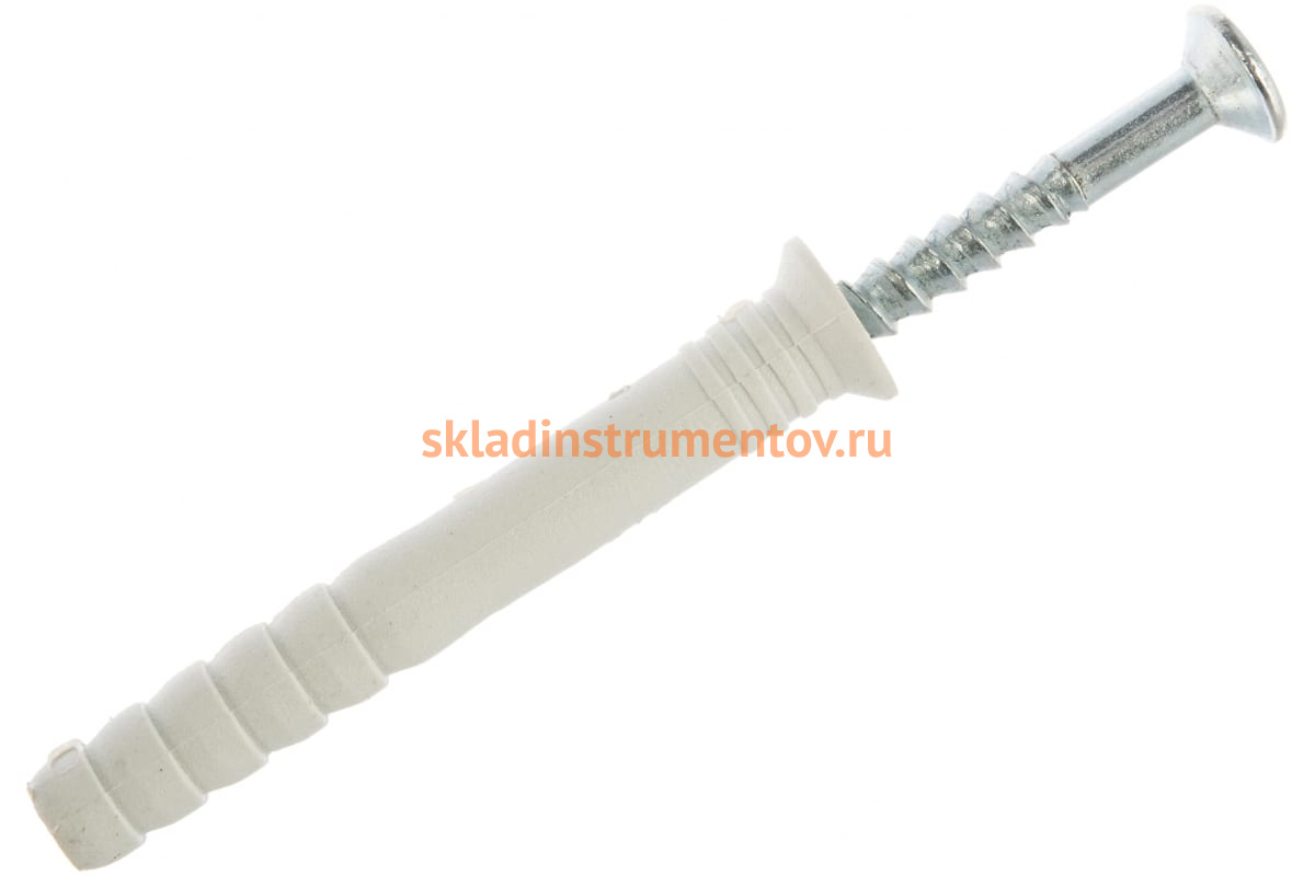 Дюбель-гвоздь Зубр 4-301375-08-060 устойчив к динамическим нагрузкам. Его используют для быстрого сквозного монтажа различных конструкций к таким полнотелым основаниям, как бетон, кирпич, камень. При помощи шлица PZ осуществляют демонтаж крепления. Гвоздь стальной, оцинкованный, а дюбель изготовлен из нейлона. Данный гвоздь с резьбой забивают в дюбель при помощи молотка. Диапазон рабочих температур: от -40 ºС до +80 ºС.