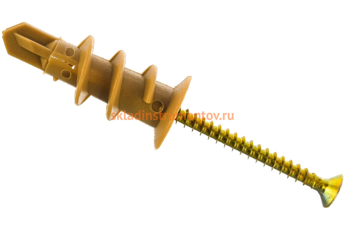 —Нейлоновый дюбель Зубр МАСТЕР тип Дрива со сверлом, для гипсокартона, с оцинкованным саморезом, 33 мм, 4 шт 4-301266—