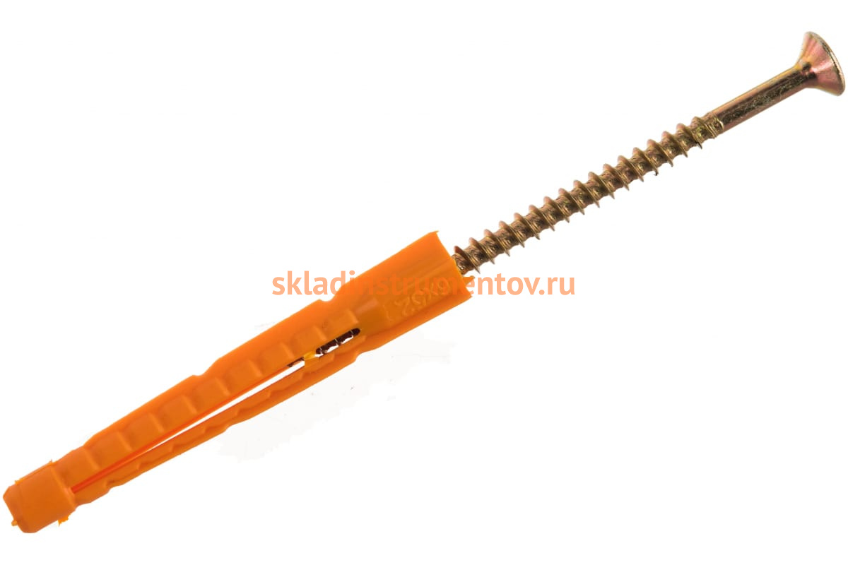 Универсальный дюбель Зубр 4-301196-06-052 применяется для закрепления неответственных конструкций как в плотных строительных материалах, так и в пустотелых. Без бортика. Прокручиванию дюбеля при монтаже препятствуют расположенные на конце блокировочные ребра. Три распорные зоны, раскрываясь, плотно и надежно фиксируют дюбель в отверстии. В комплект входит шуруп с потайной головкой (шлиц Pz). Шуруп изготовлен из оцинкованной стали, что исключает коррозию.