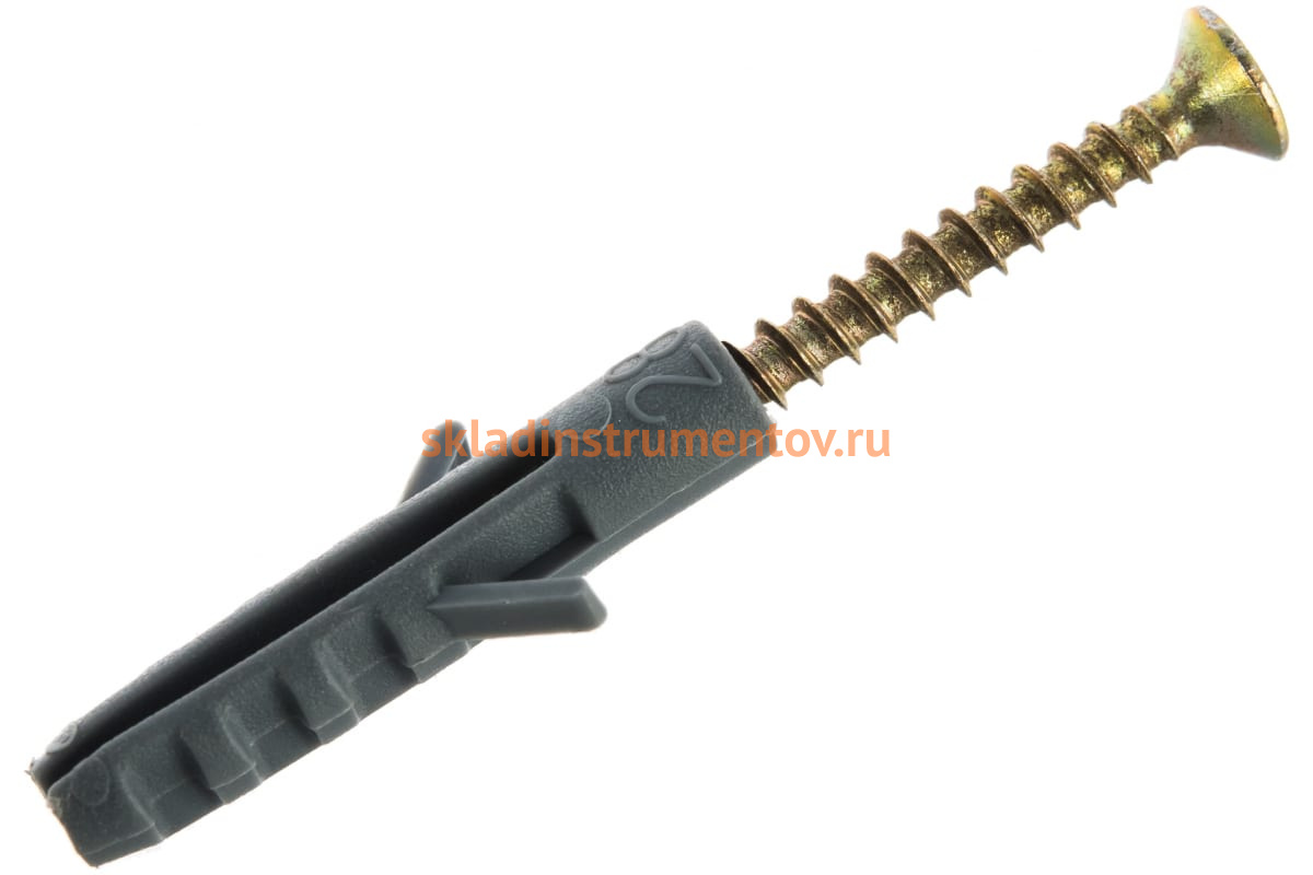 Полипропиленовый дюбель ЗУБР 30662-05-25 типа "Евро" без борта применяется для крепления конструкций с помощью универсальных шурупов к таким поверхностям, как бетон, кирпич, строительный камень. Стопорные усы, расположенные на гильзе, препятствуют прокручиванию дюбеля при монтаже. В комплект входит шуруп с потайной головкой (шлиц Pz). Шуруп изготовлен из оцинкованной стали, что исключает его коррозию.