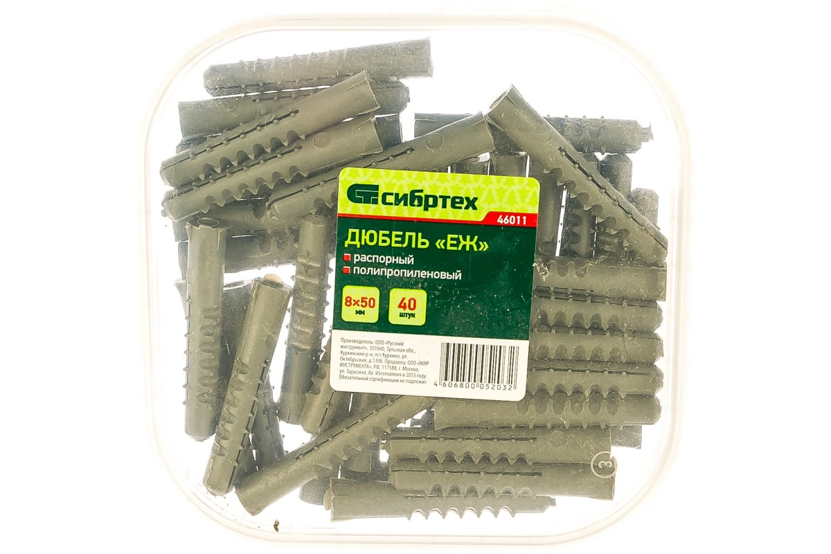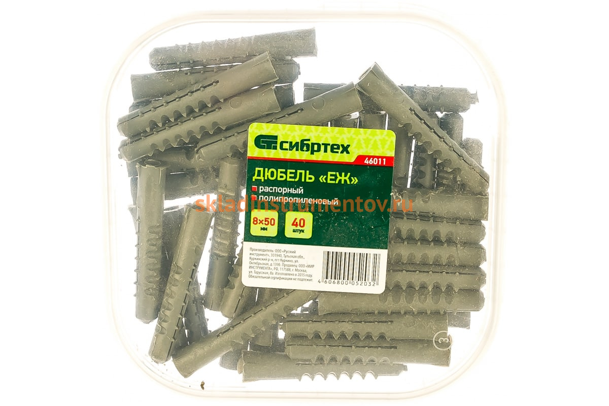 —Дюбель СИБРТЕХ 8х50 Еж распорный полипропиленовый, 40 шт 46011—
