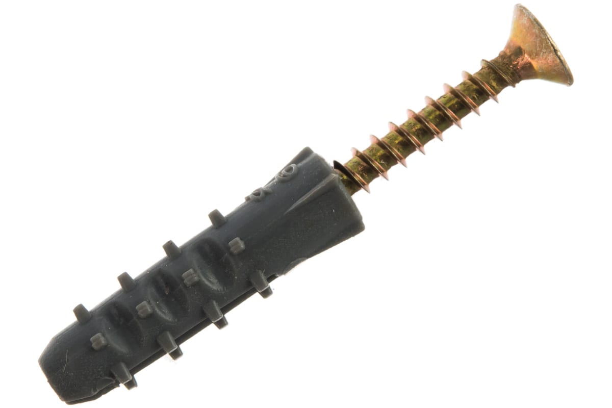 Дюбель ЗУБР 30661-06-25 серии "Стандарт" является самым распространенным типом дюбелей в России - полипропиленовый дюбель без борта типа "Ёжик". Он предназначен для крепления легковесных конструкций к таким материалам, как бетон, строительный камень, полнотелый кирпич. Расположенные на конце дюбеля блокировочные ребра препятствуют его прокручиванию при монтаже, а шипы создают дополнительное трение и обеспечивают прочность крепления. В комплект входит оцинкованный шуруп с потайной головкой (шлиц Pz).