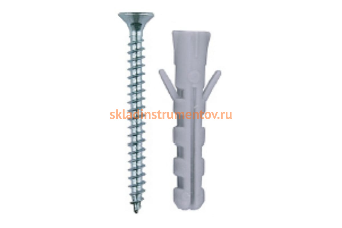 Полипропиленовый дюбель ЗУБР 30662-06-35 типа "Евро" без борта применяется для крепления конструкций с помощью универсальных шурупов к таким поверхностям, как бетон, кирпич, строительный камень. Стопорные усы, расположенные на гильзе, препятствуют прокручиванию дюбеля при монтаже. В комплект входит шуруп с потайной головкой (шлиц Pz). Шуруп изготовлен из оцинкованной стали, что исключает его коррозию.
