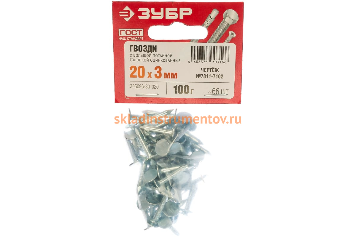 Гвозди с большой потайной головкой Зубр МАСТЕР оцин 305096-30-020 изготовлены из высококачественной стали в строгом соответствии с действующими стандартами.