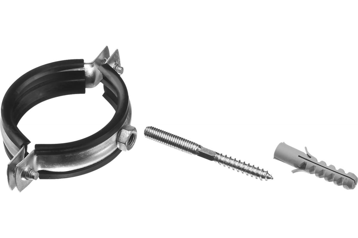 Трубный хомут с гайкой Зубр оцинкованный, в комплекте с сантехнической шпилькой и дюбелем, 1/2" 37866-20-24_z01