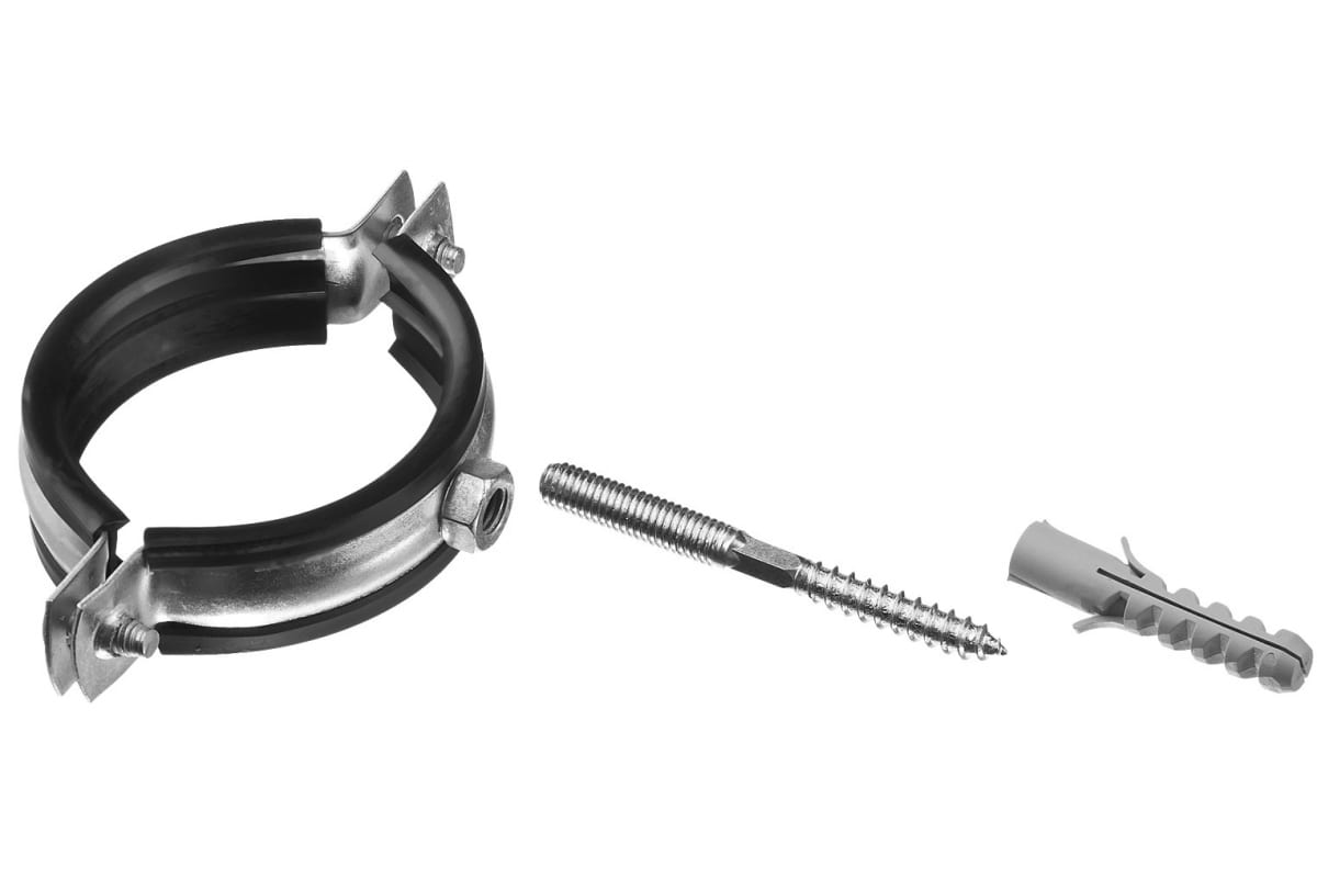 —Трубный хомут с гайкой ЗУБР оцинкованный, в комплекте с сантехнической шпилькой и дюбелем, 3" 37866-87-94—