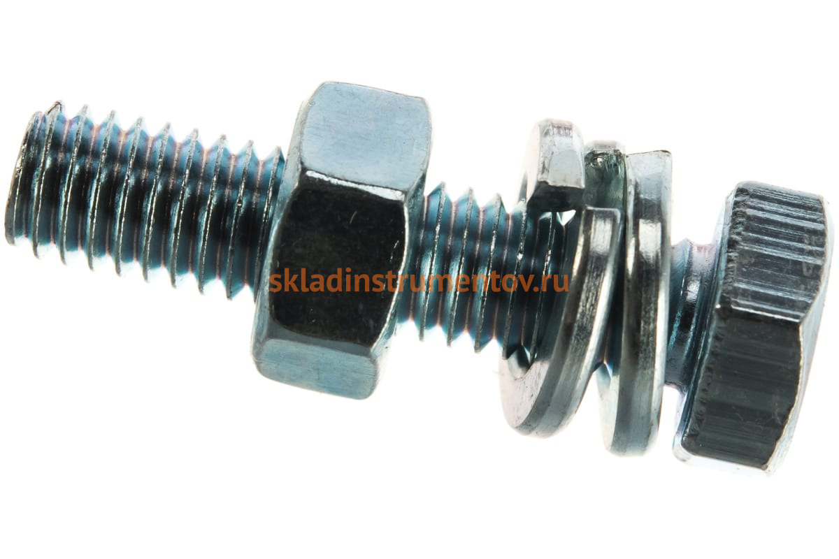—Болт с шестигранной головкой в комплекте с гайкой, шайбой, шайбой пружинной, ЗУБР, МАСТЕР, 303436-06-025—