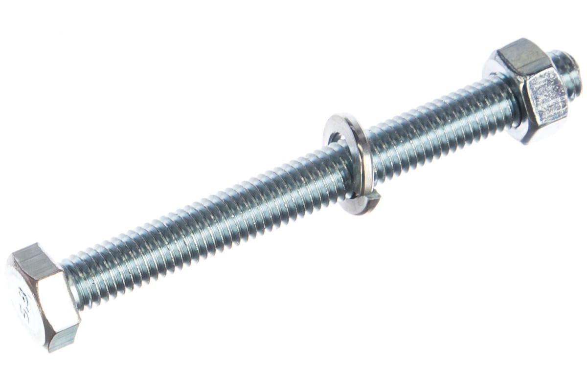 —Болт ЗУБР (DIN933) в комплекте с гайкой (DIN934), шайбой (DIN125), шайбой пружинной (DIN127), 303436-08-080—