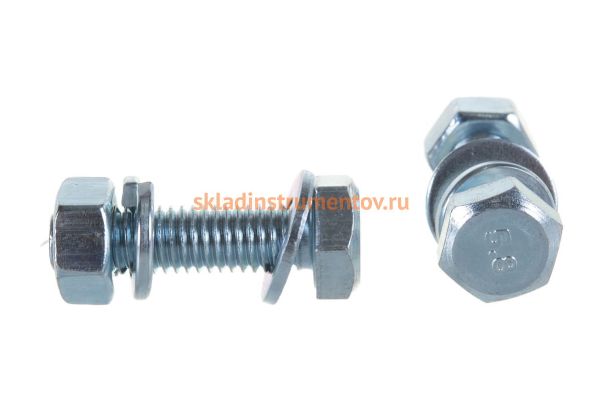 —Болт с шестигранной головкой в комплекте с гайкой, шайбой, шайбой пружинной, ЗУБР, МАСТЕР, 303436-08-030—