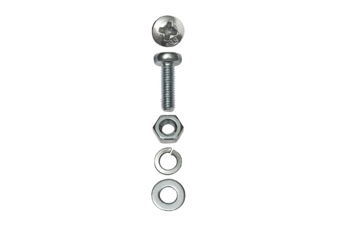 —Винт Зубр DIN7985 в комплекте с гайкой, DIN934, шайбой, DIN125, шайбой пруж., DIN127, M5x50мм, ТФ6, 9шт. 4-303476-05-050—