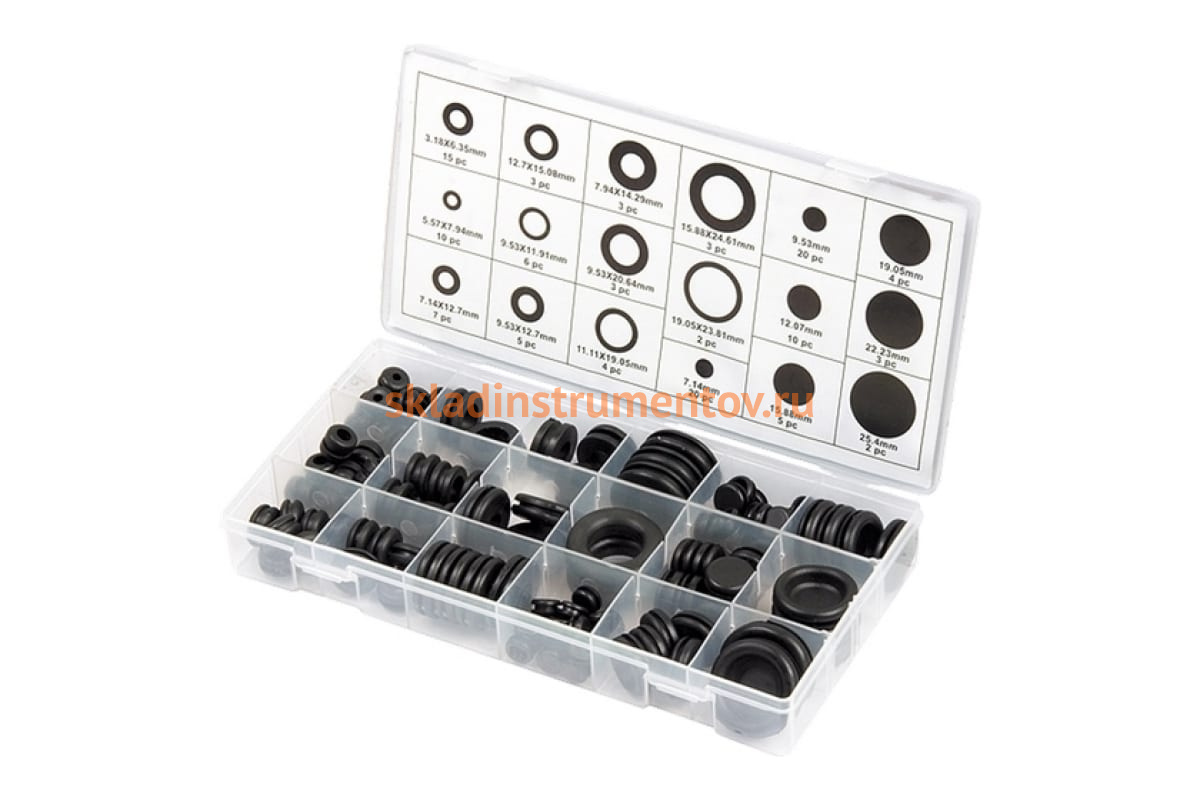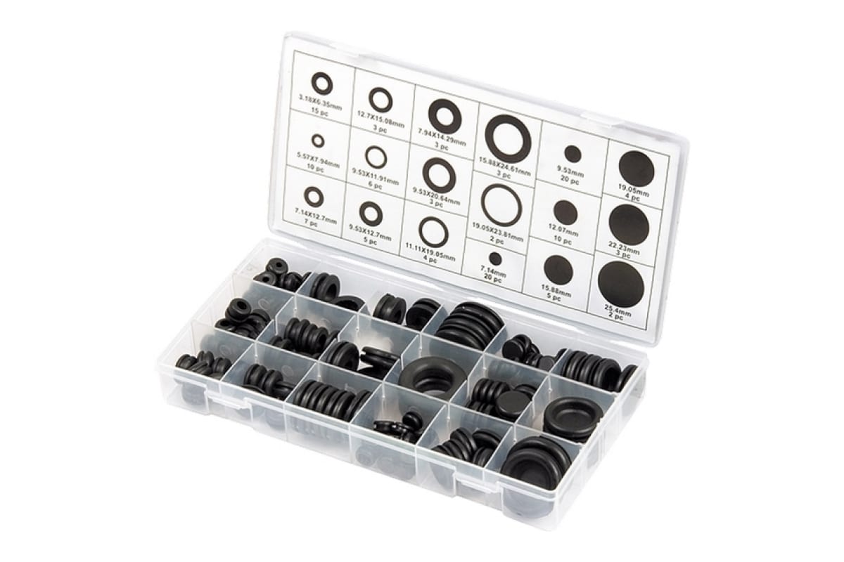 Набор сальников СИБРТЕХ D 6,35 - 25,4 мм 125 предметов 47599 служит для герметизации зазоров между подвижными и неподвижными деталями автомобиля. Сальники изготовлены из резины. В комплекте идут все самые популярными размеры. Кейс выполнен из пластика и обладает отсеками под каждый размер.