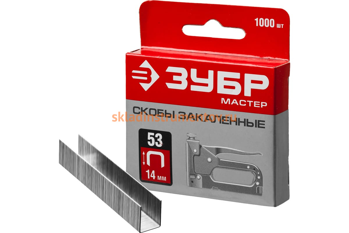 Скобы закаленные тип 53 МАСТЕР ЗУБР 31625-14 предназначены для строительных степлеров. Применяются для надежного крепления тканых материалов (ткани, обивки, холста) и материалов не несущих высоких нагрузок к поверхности из дерева, ДВП, пластика.