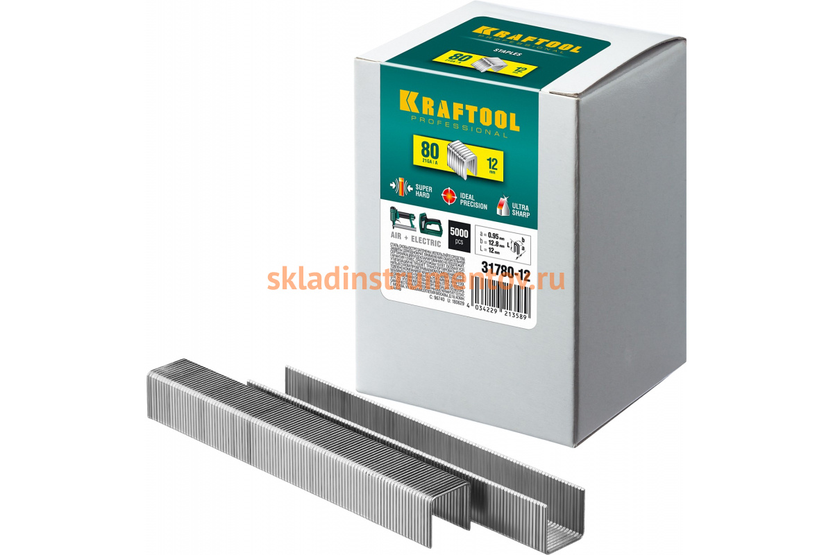 —Закаленные скобы для степлера Kraftool тип 80 12 мм 5000 шт. 31780-12—