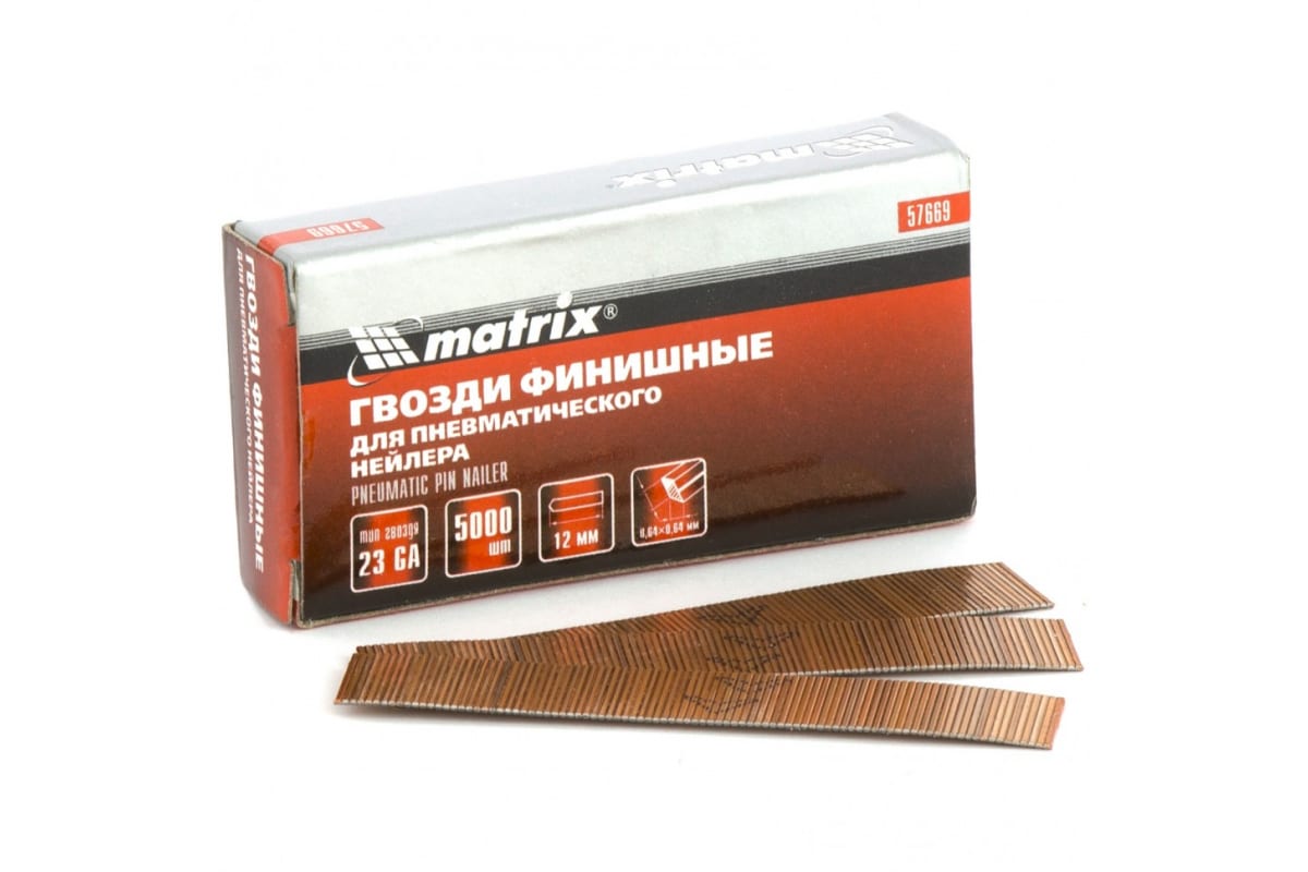 Шпильки финишные 23GA для пневматического нейлера 5000 шт MATRIX 57669
