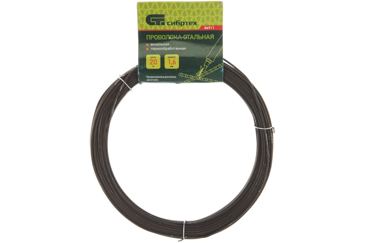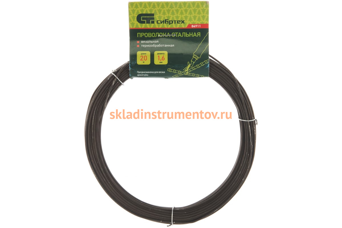 —Стальная проволока СИБРТЕХ 20 м, вязальная, термообработанная 1,6 мм 84911—