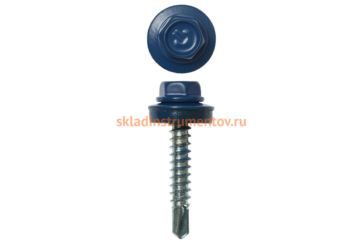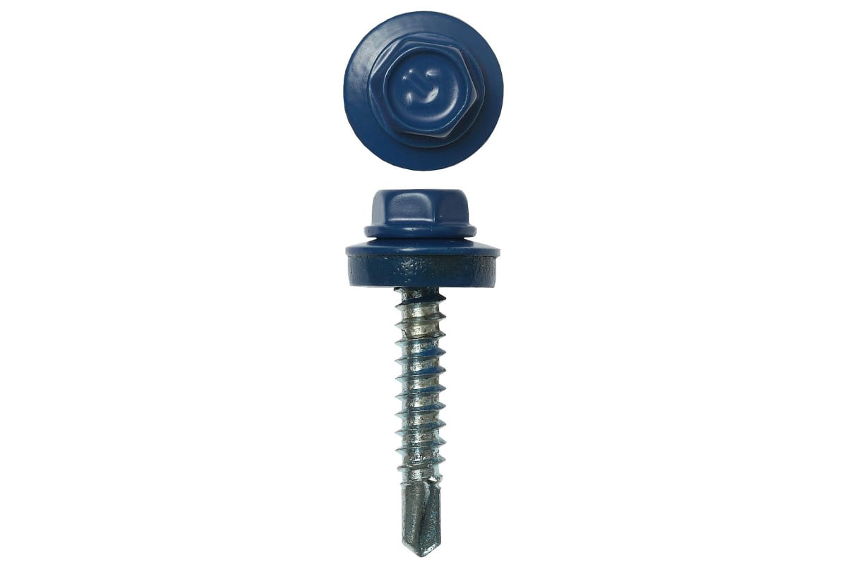 Саморезы для крепления кровельных материалов к деревянной обрешетке Зубр цвет RAL 5005 синий насыщенный, оцинкованный, 4,8x38мм, 1600шт 4-300310-48-038-5005