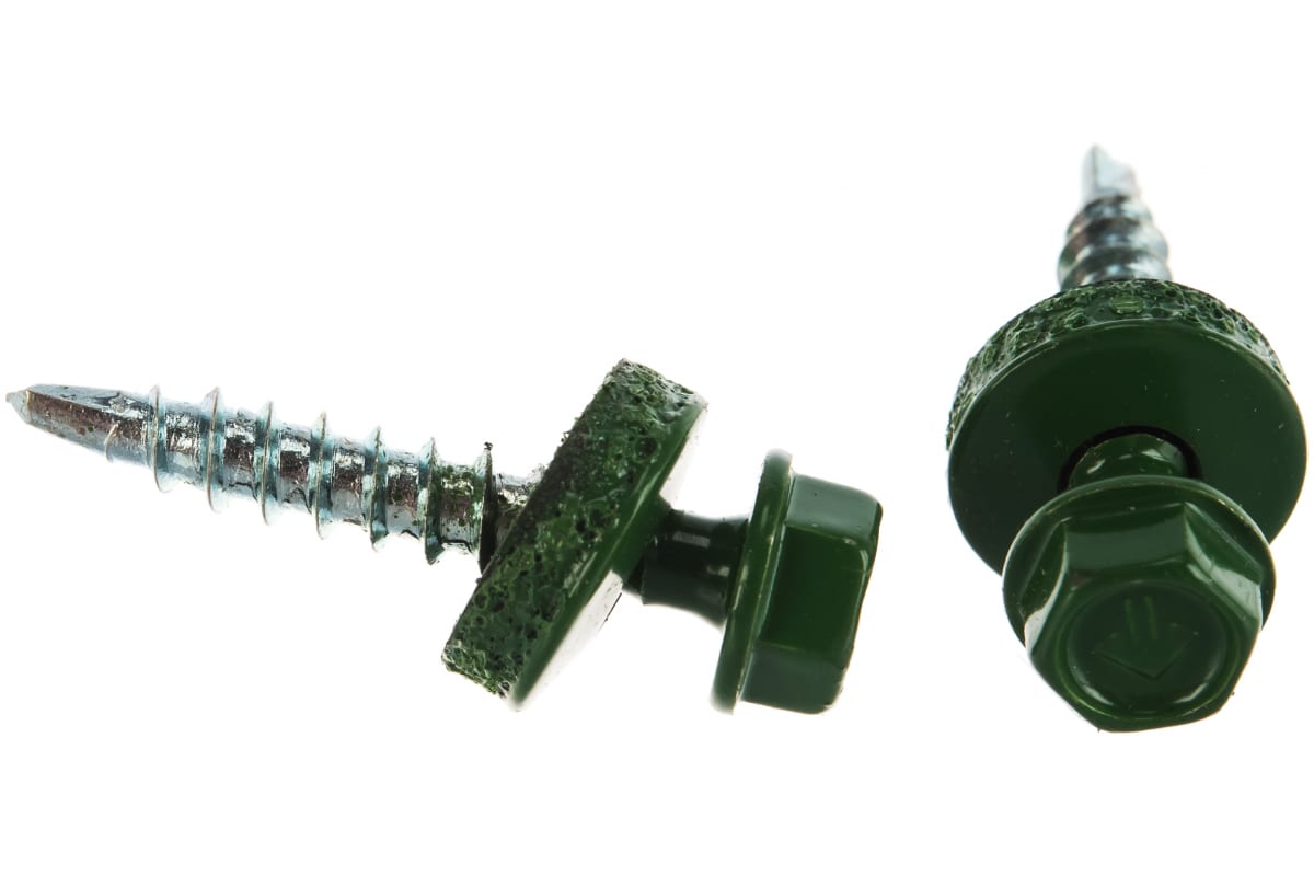 Саморезы для крепления кровельных материалов к деревянной обрешетке Зубр цвет RAL 6002 зеленый лист, оцинкованный, 4,8x29мм, 2500шт 4-300310-48-029-6002