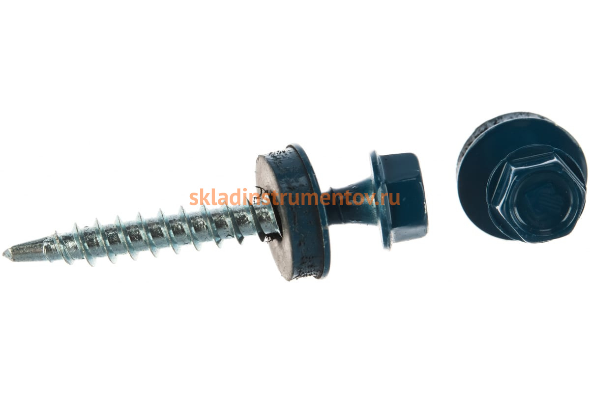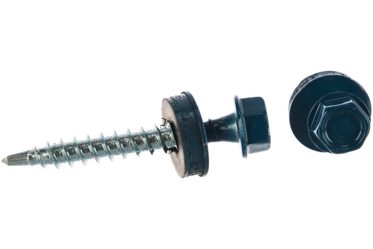 Саморезы Зубр для крепления кровельных материалов к деревянной обрешетке, цвет RAL 5009 небесно-голубой, оцинкованные, 4,8x38мм, 1600шт 4-300310-48-038-5009