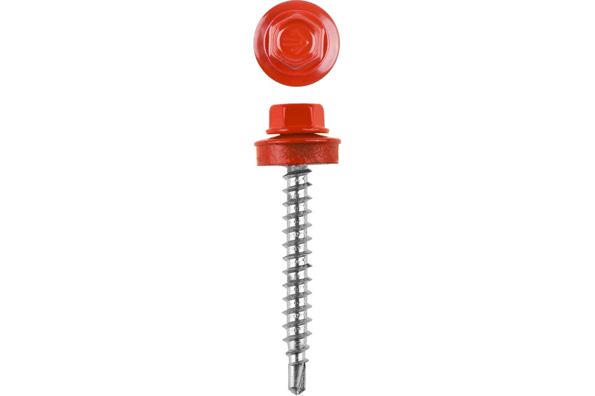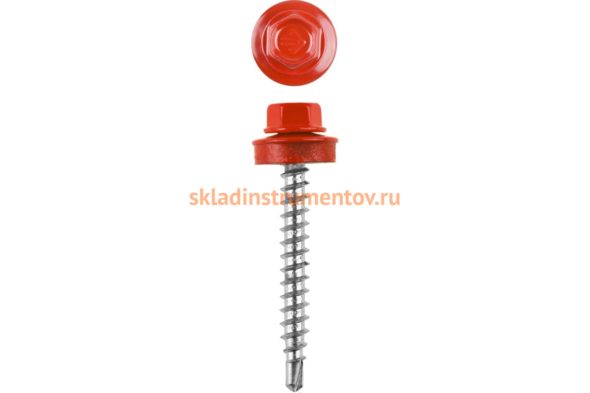Саморезы Зубр для крепления кровельн. матер. к дерев. обреш. цвет RAL 3003 рубиново-красный оцинк. 4,8x50мм, 250шт. 4-300315-48-050-3003