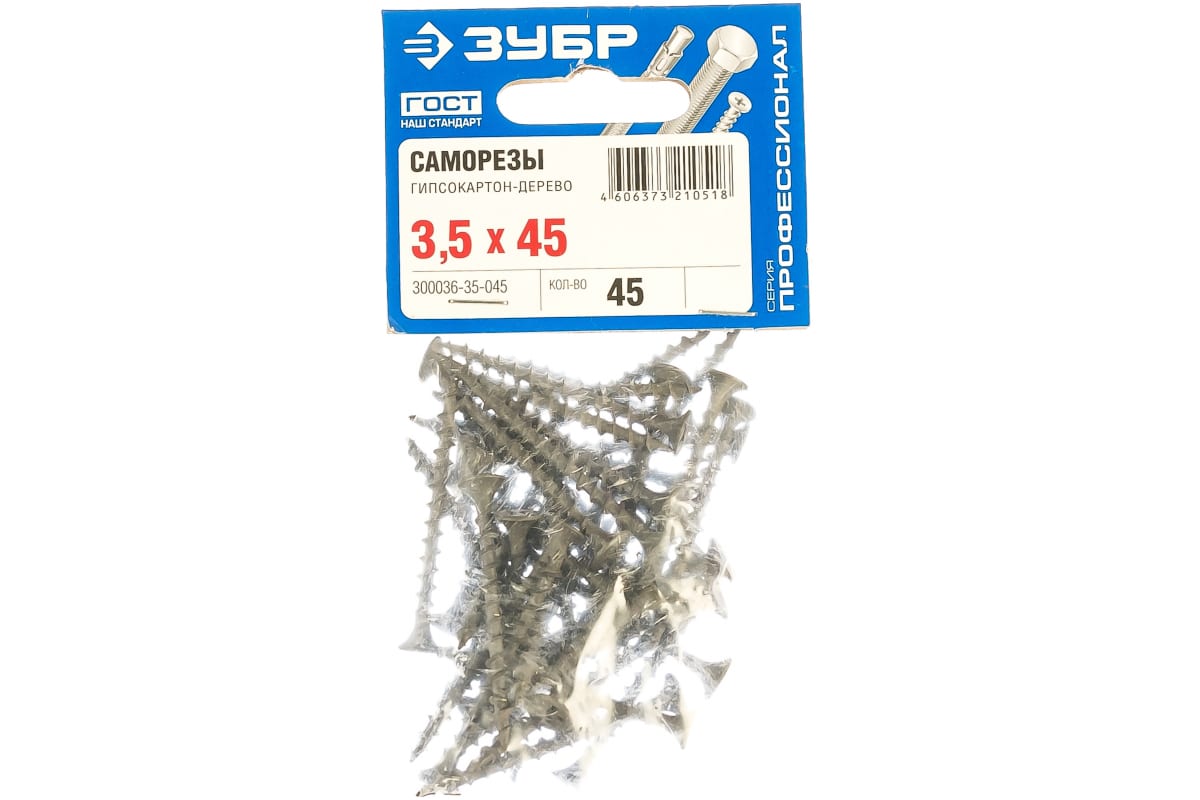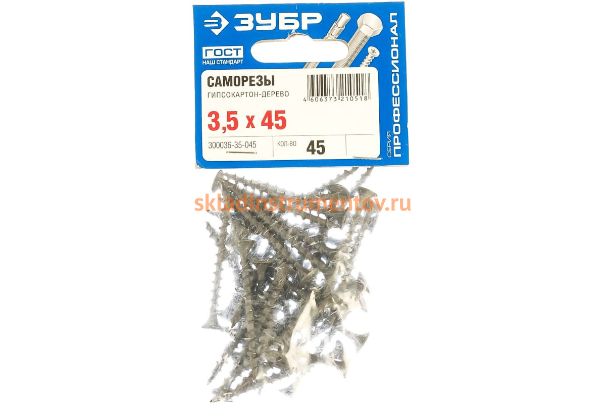 —Фосфатированный саморез с крупной резьбой по дереву Зубр PH2 3,5x45 мм 45 шт 300036-35-045—