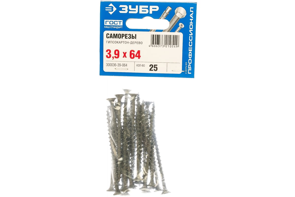 —Фосфатированные саморезы с крупной резьбой по дереву Зубр PH2, 3,9 x 64 мм, 25 шт 300036-39-064—