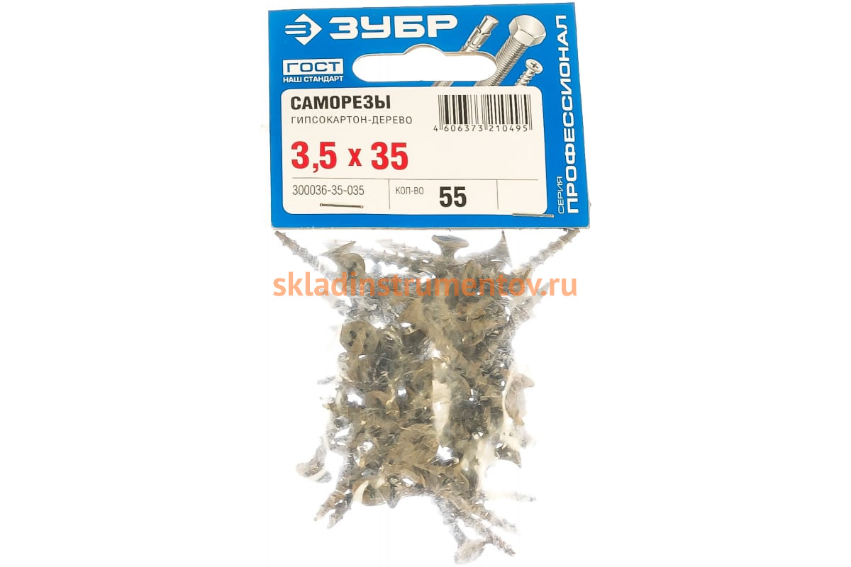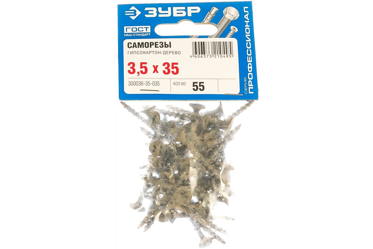 —Фосфатированный саморез с крупной резьбой по дереву Зубр PH2 3,5x35 мм 55 шт 300036-35-035—