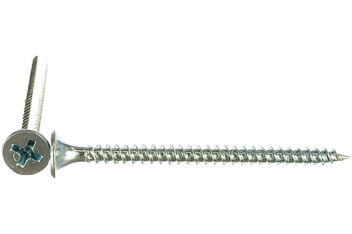 Оксидированные саморезы ЗУБР 4-300020-35-050 имеют острый наконечник, при помощи которого легко врезаются в материал, и мелкую резьбу. Головка саморезов потайная и оснащена крестообразным шлицем РН2. Их используют для крепления листов гипсокартона к дереву, ДСП, ДВП и другим материалам, а также к металлическим стойкам толщиной до 0,9 мм. Оснастка защищена от коррозии.