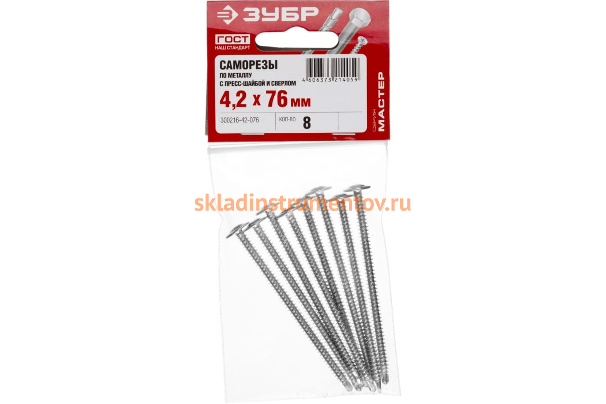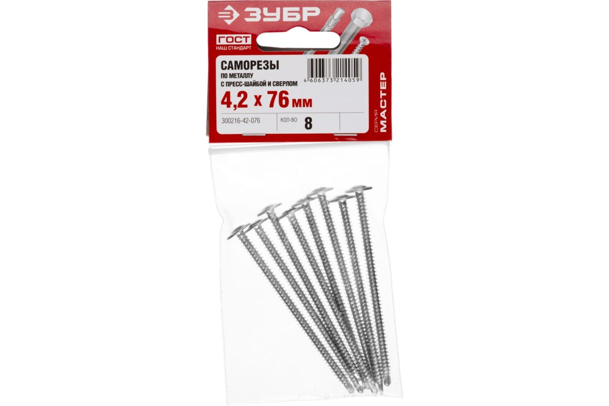 —Саморезы с прессшайбой по листовому металлу до 0,9 мм Зубр PH2 4,2х76 мм 10шт 300196-42-076—
