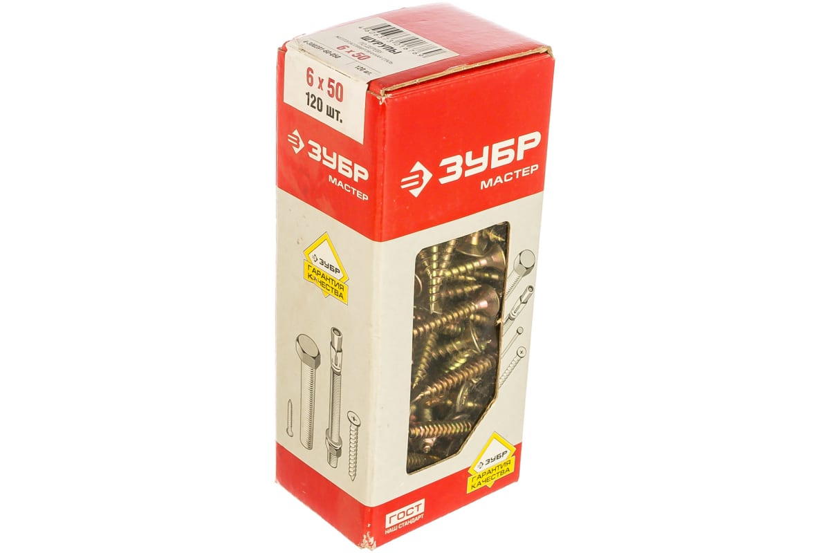 —Универсальные шурупы для дерева, ДСП, ДВП Зубр желтопассивированные, PZ, 6,0x50мм, ТФ1, 120 штук 4-300391-60-050—